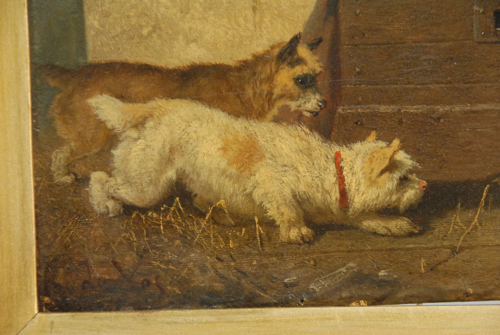 Lot 174: Vincent De Vos 1829-1875 TWO TERRIERS LOOKING oil on panel signed lower left De Vos 5 1/2 x 7 1/2