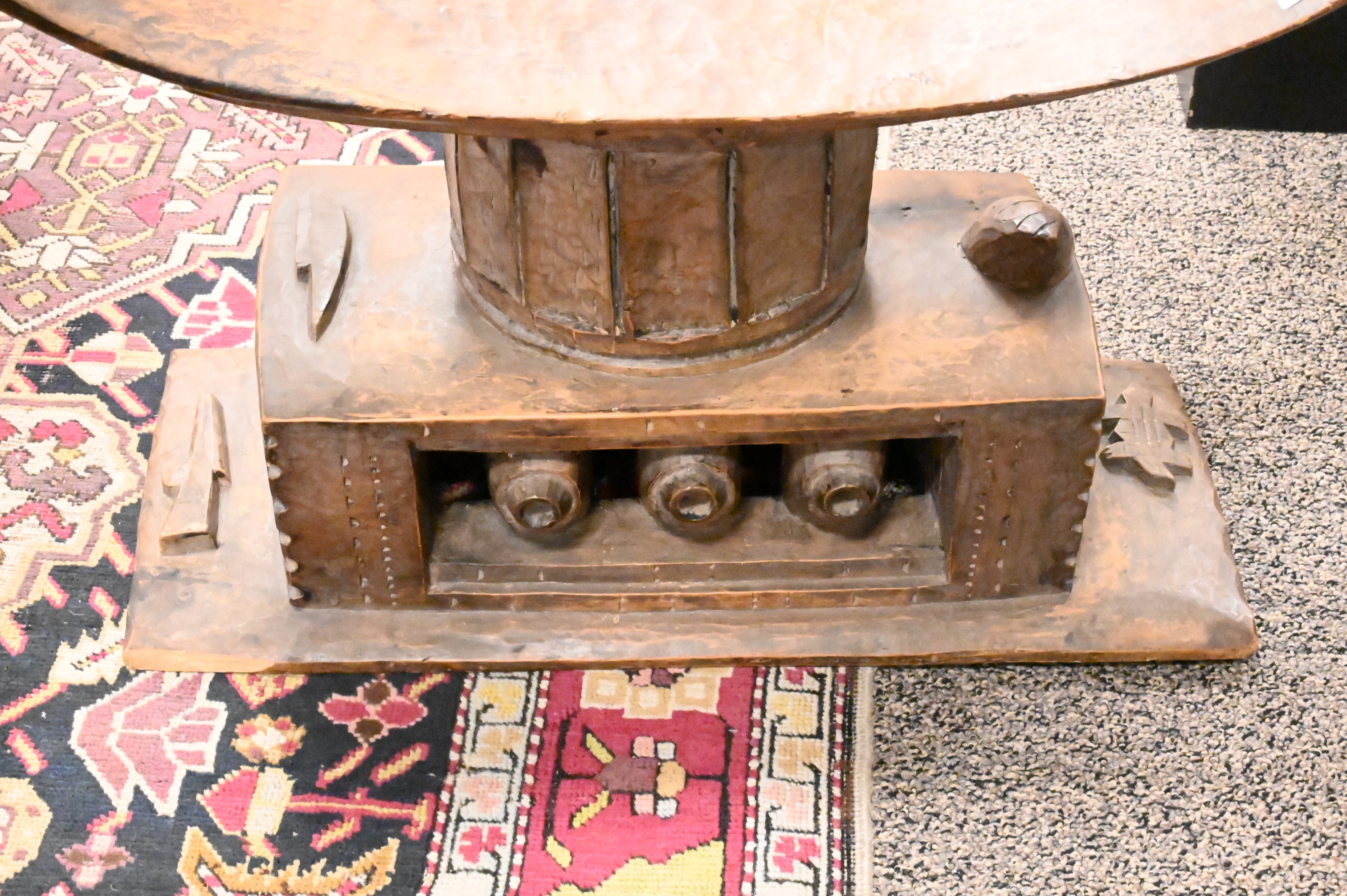 With pierce carved base, with carved gun and alligator, Ghana