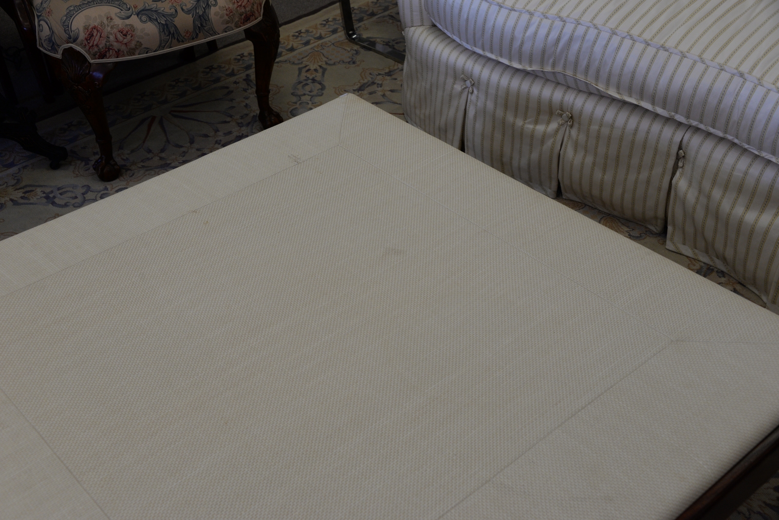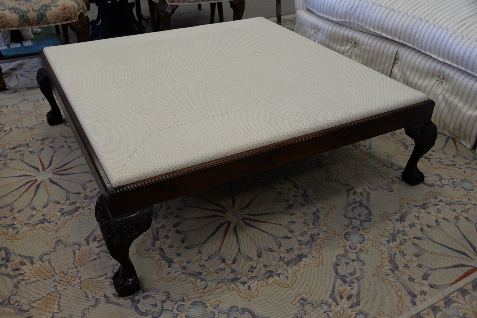 Chippendale style mahogany square coffee table with woven top. ht. 15in., top: 49 x 49