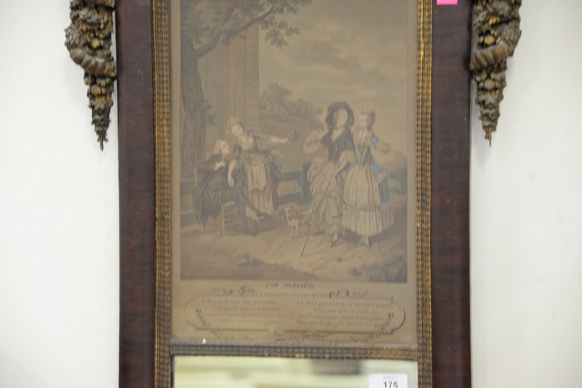 Empire mahogany two part hall mirror. ht. 54 1/2 in. wd. 17 1/2 in.