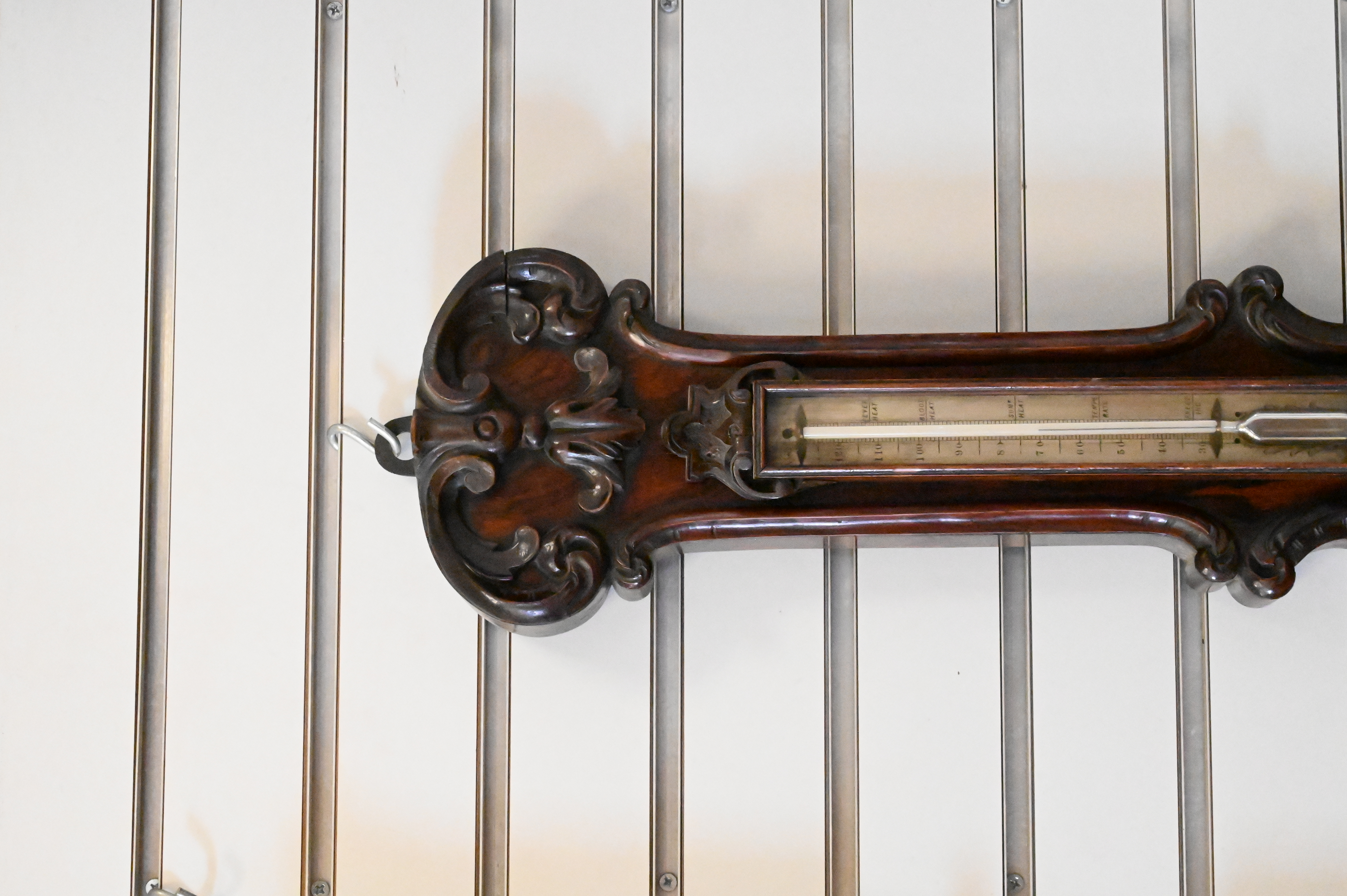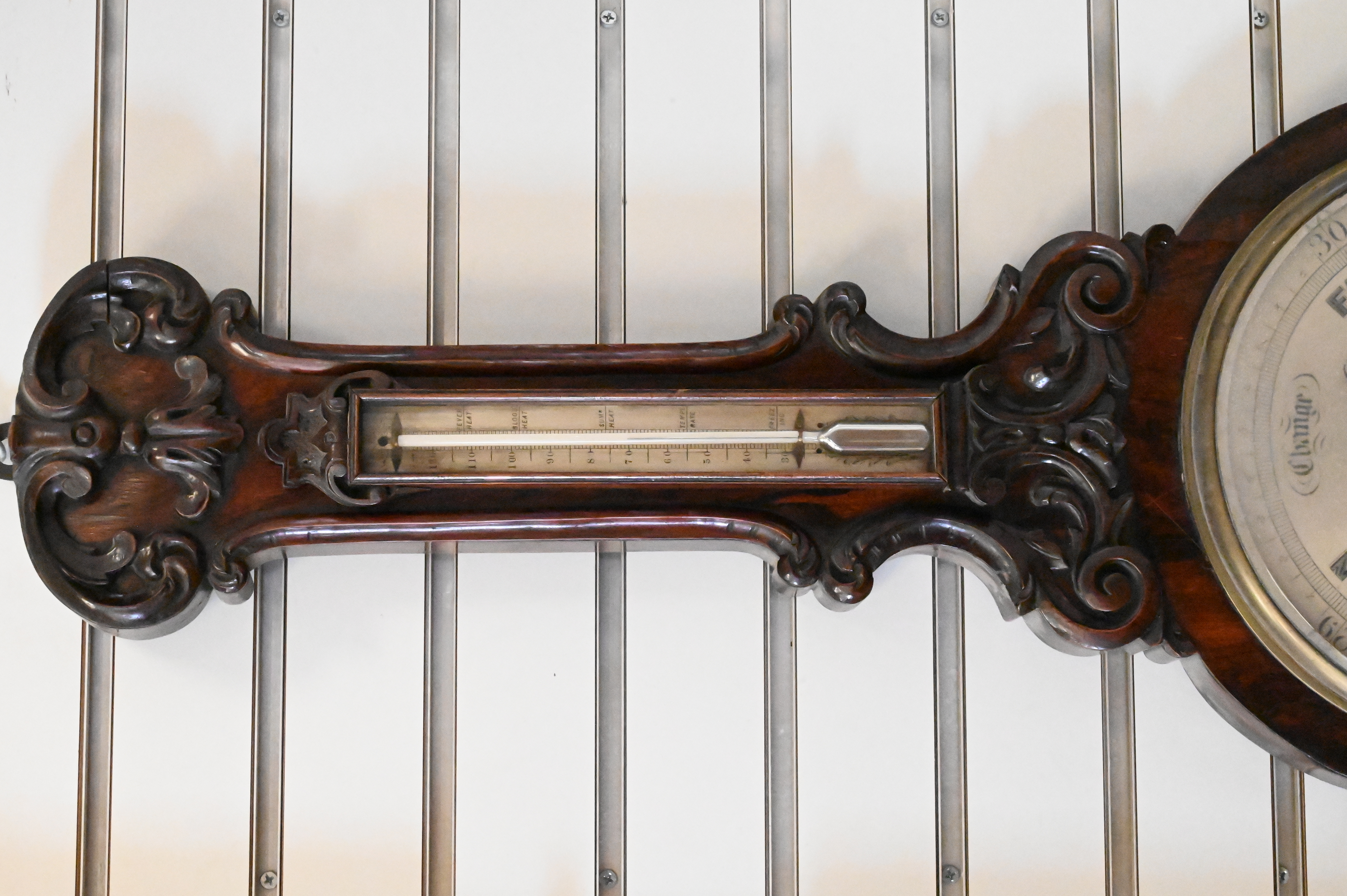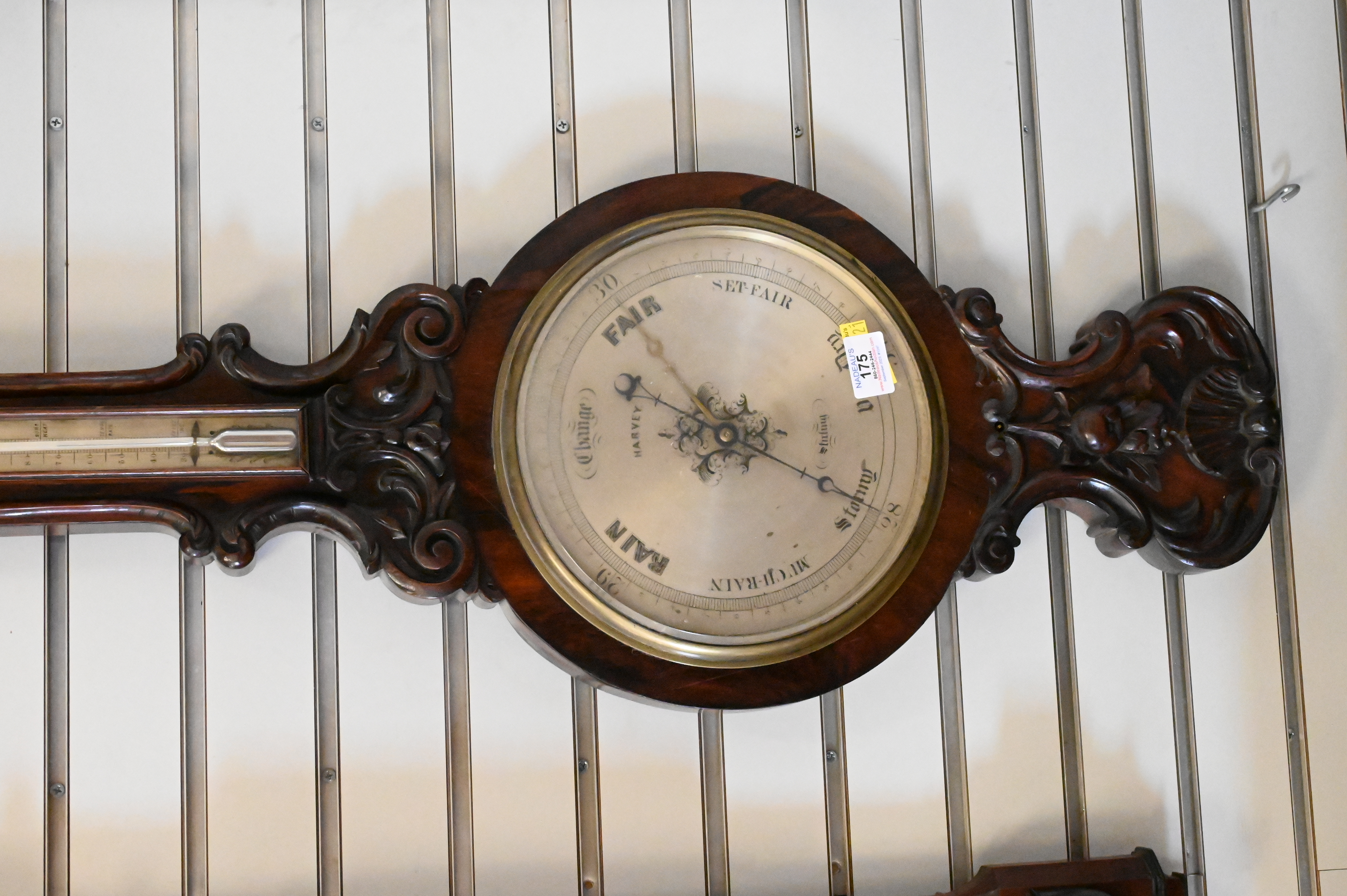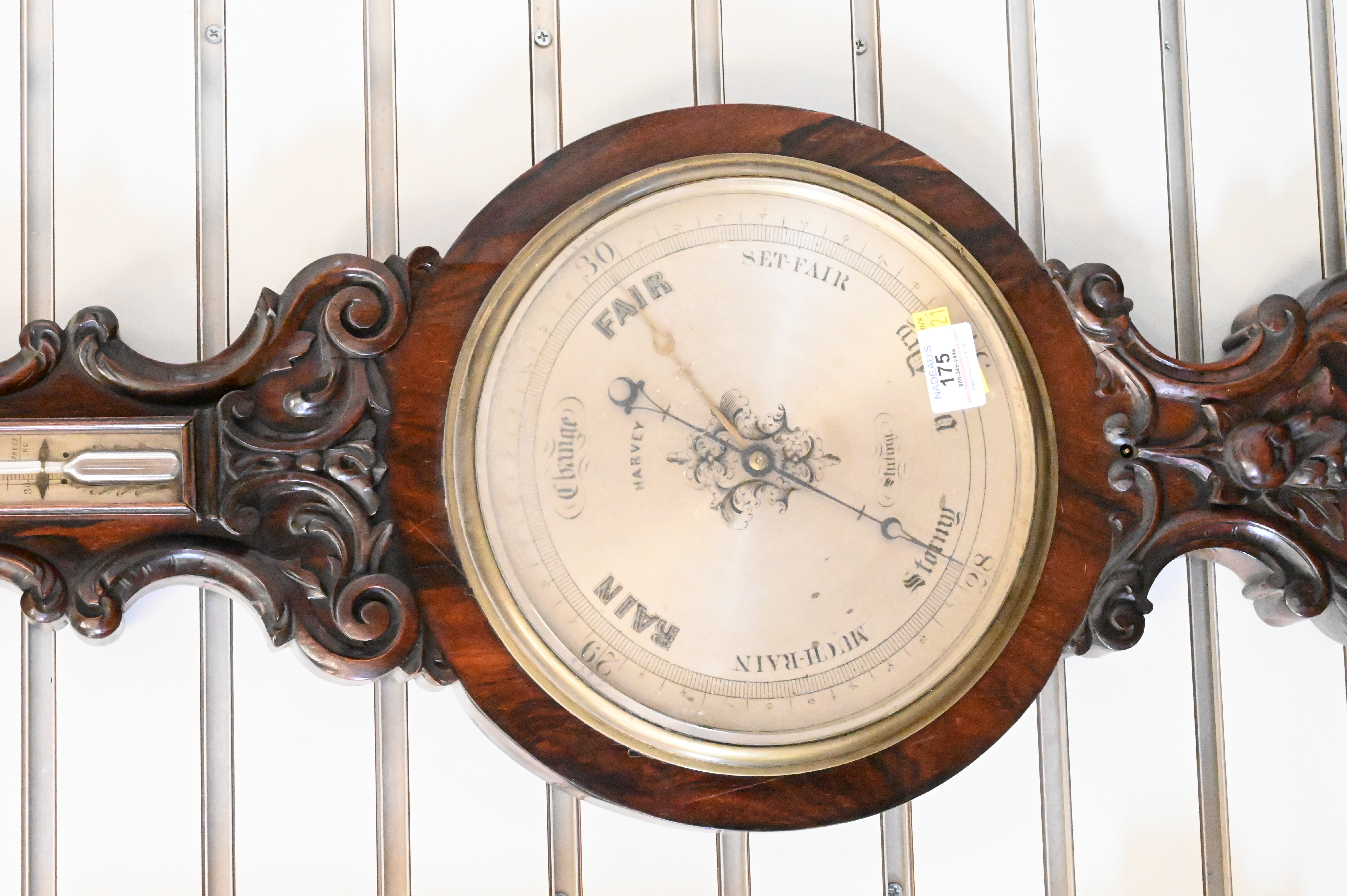 Harvey Stirling Victorian Carved Rosewood Barometer and Thermometer, height 40 inches.