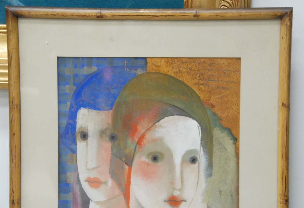 KADAR BELA 1877-1956 BUST OF TWO WOMEN gouache-paper signed lower right Kadar Bela sight size 17 1/2 x 11 1/2