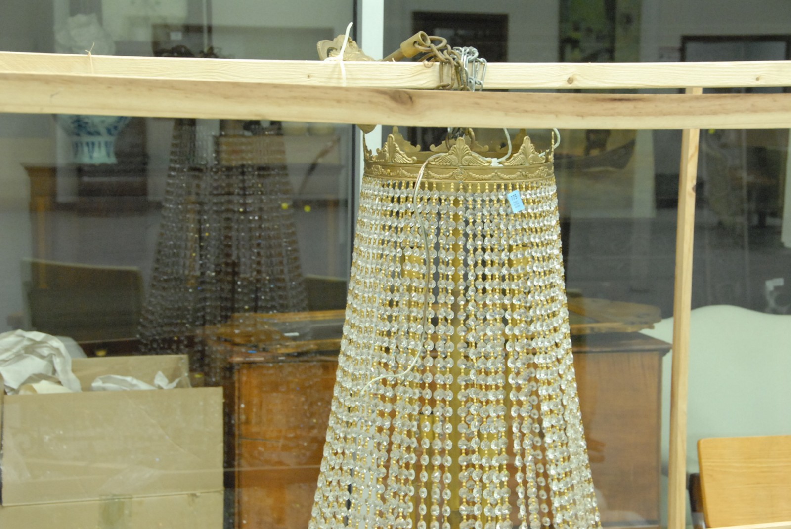 Lot 175: Large brass and crystal ten light chandelier