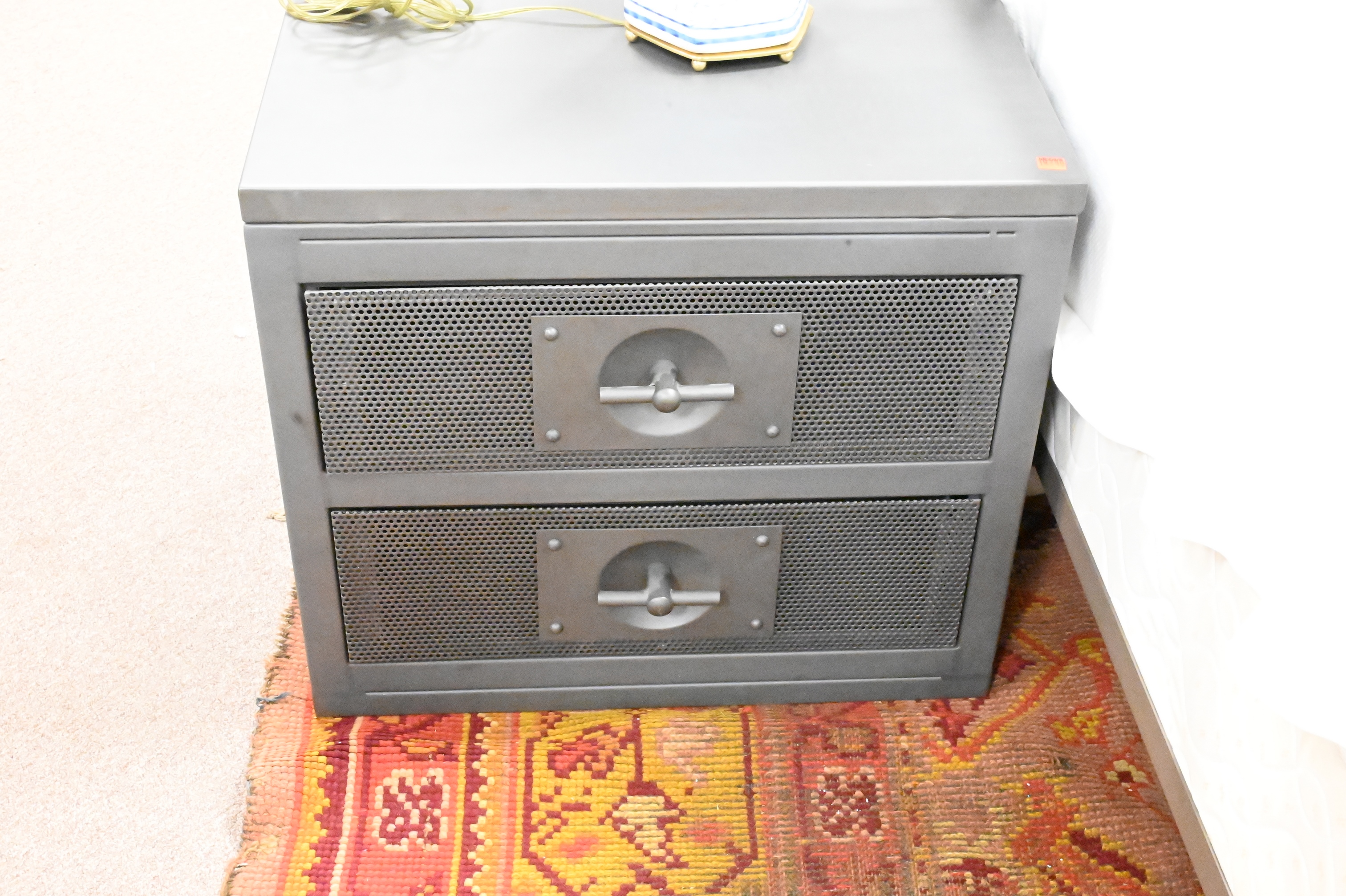 Lot 175: Leon Twin Headboard along with Pair of Andrew Martin Industrial Metal Side Tables