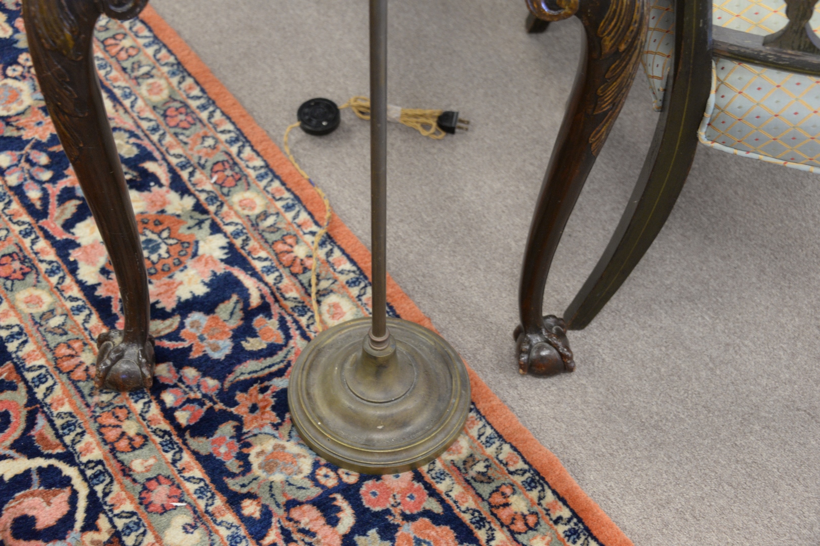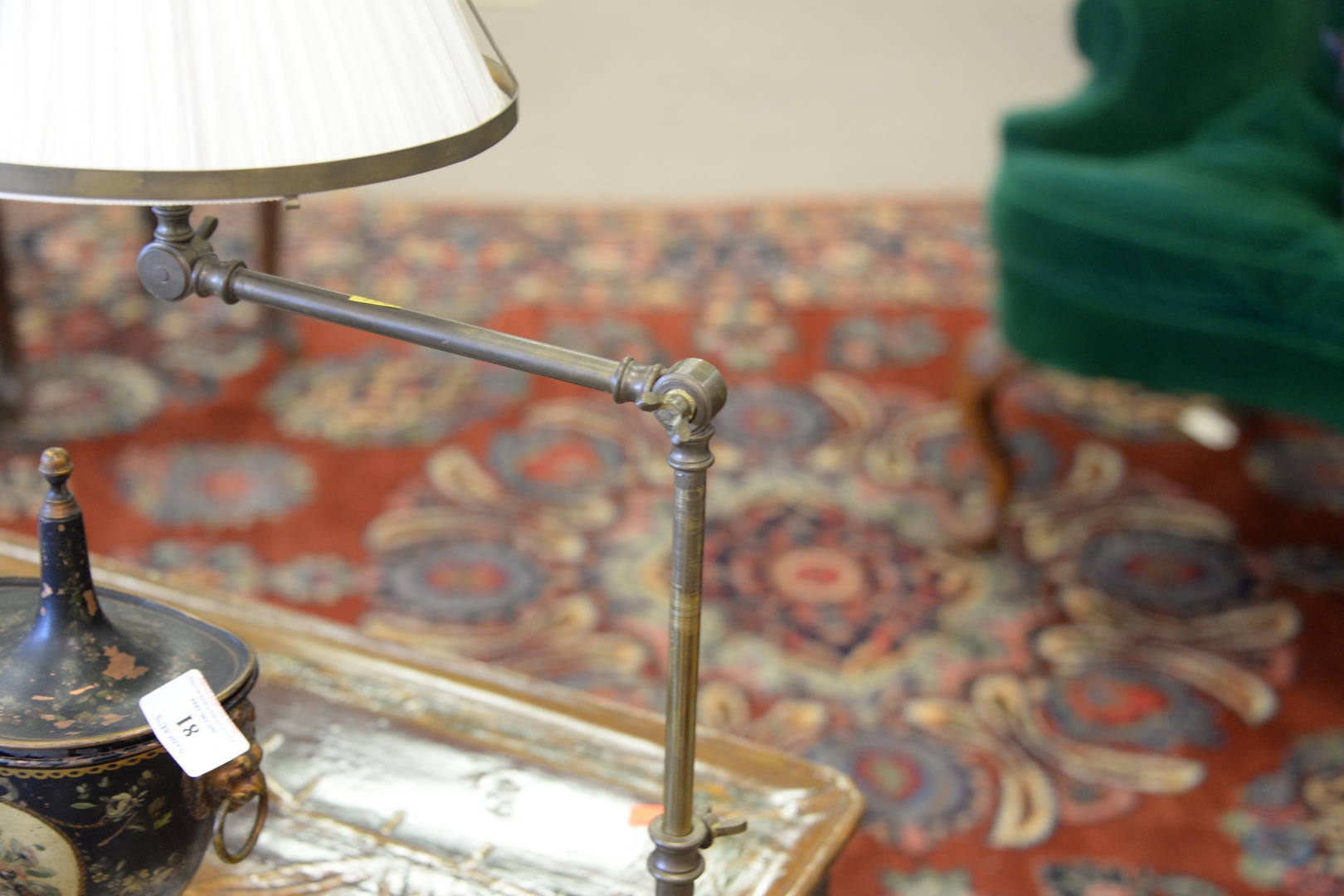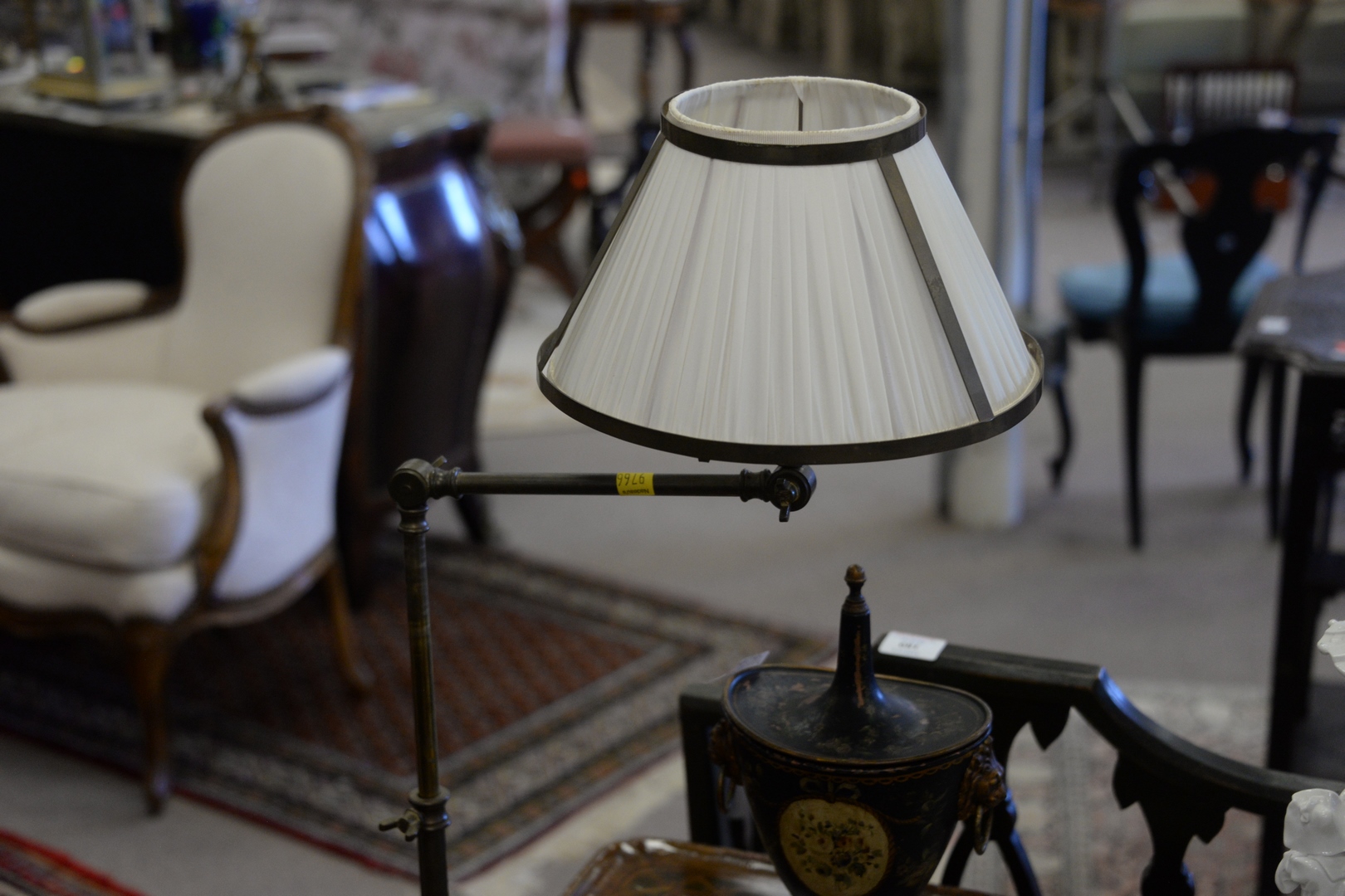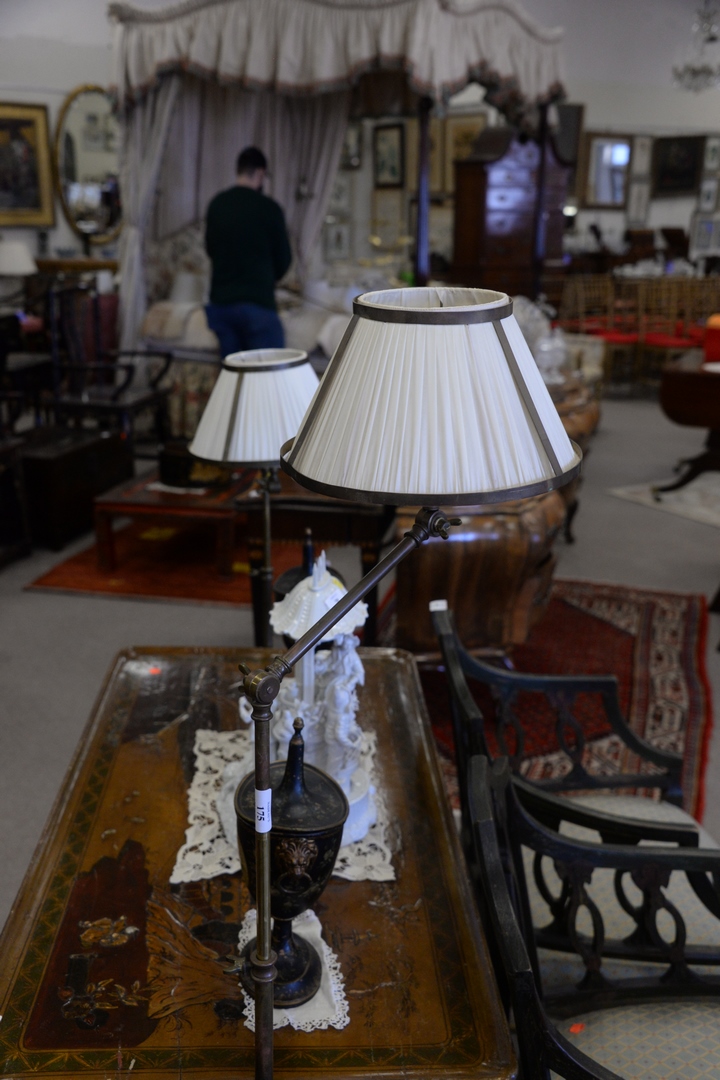 Pair of Bronze Adjustable Floor Lamps, with metal framed silk shades.