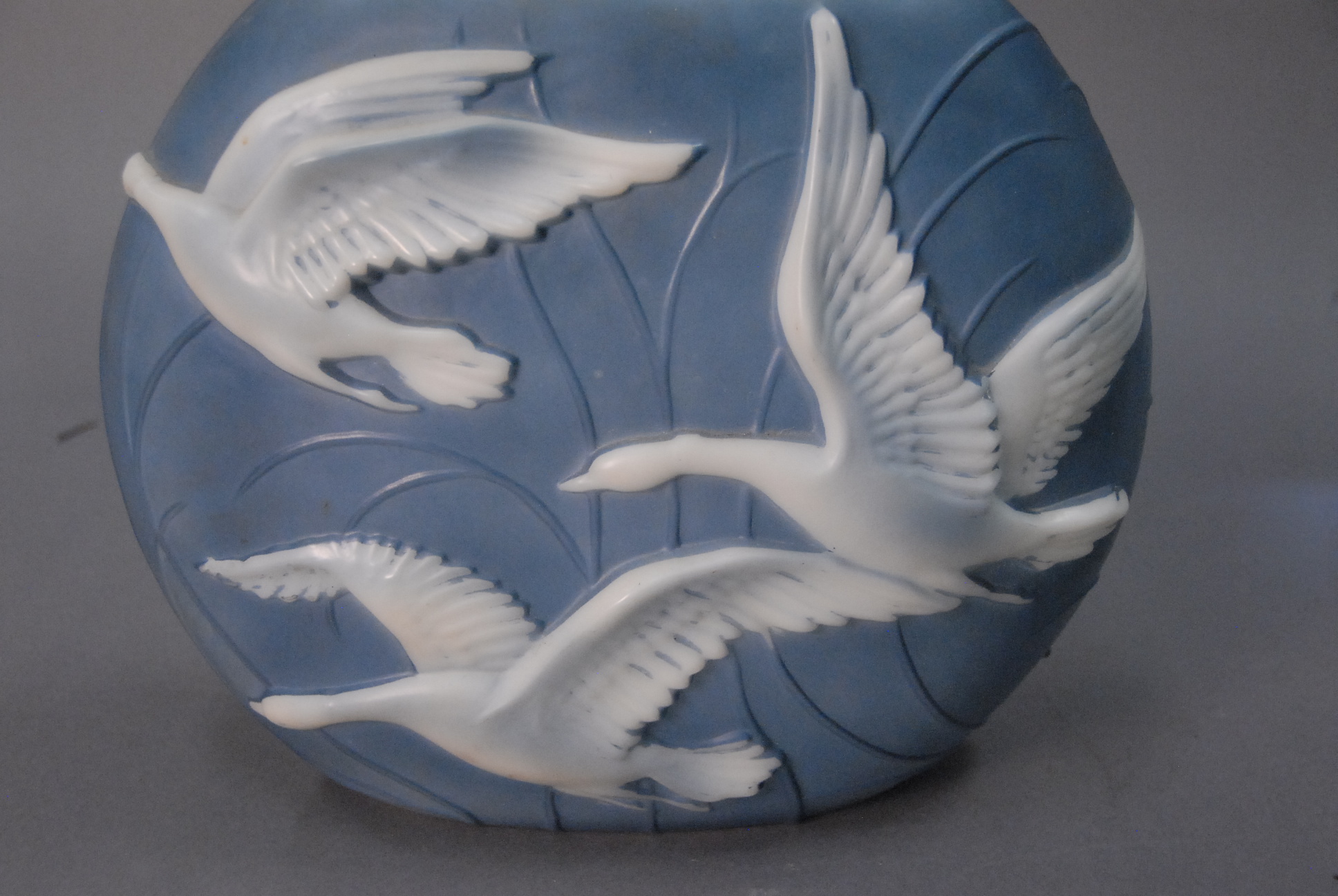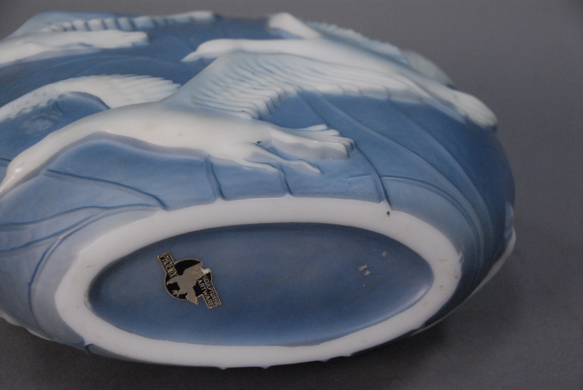 Phoenix vase oval, blue and white, ht. 9 1/2in.