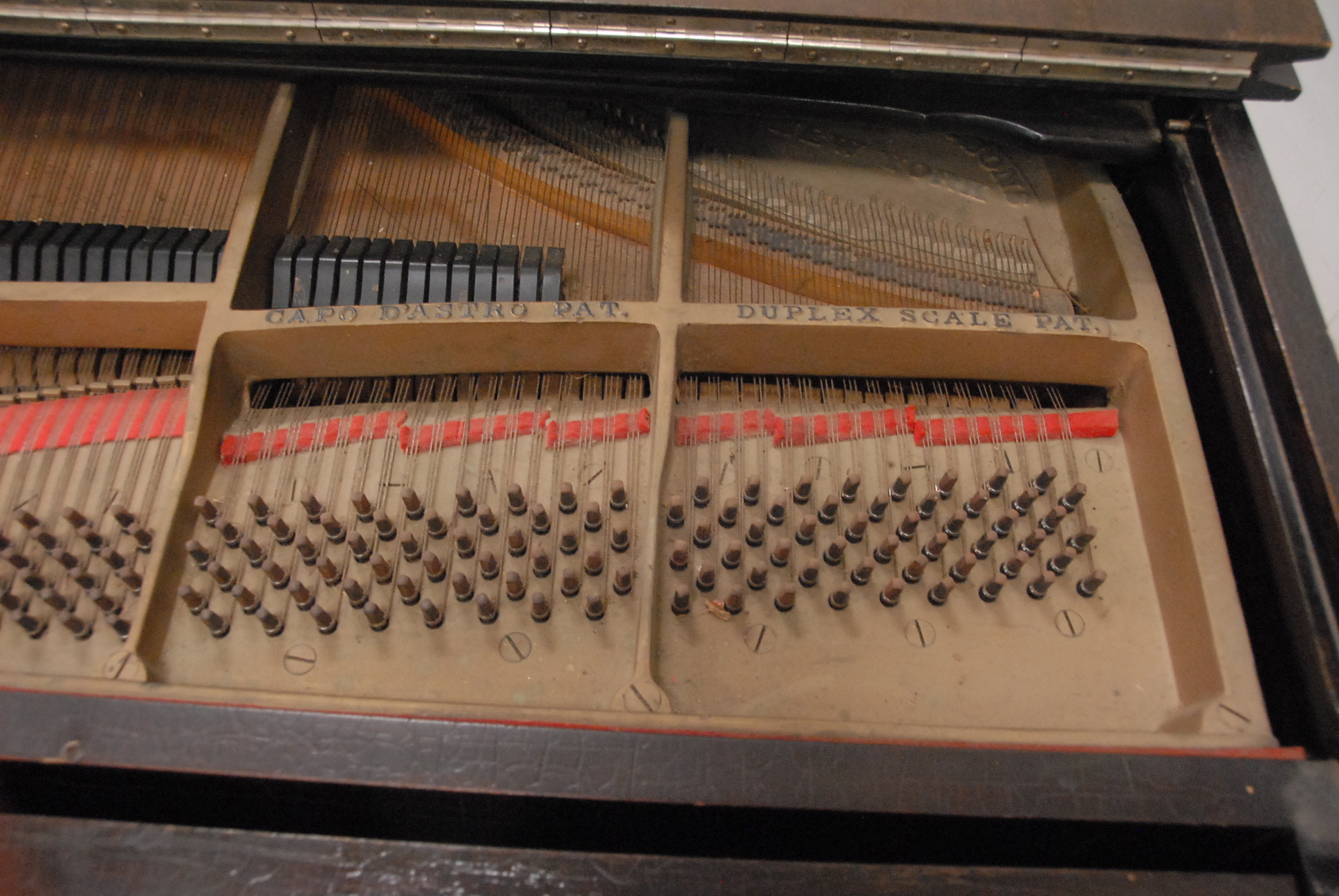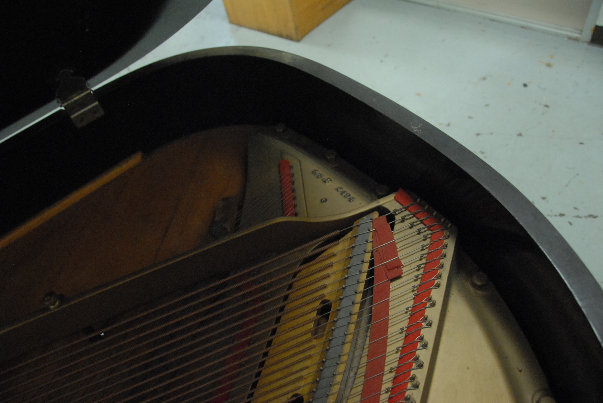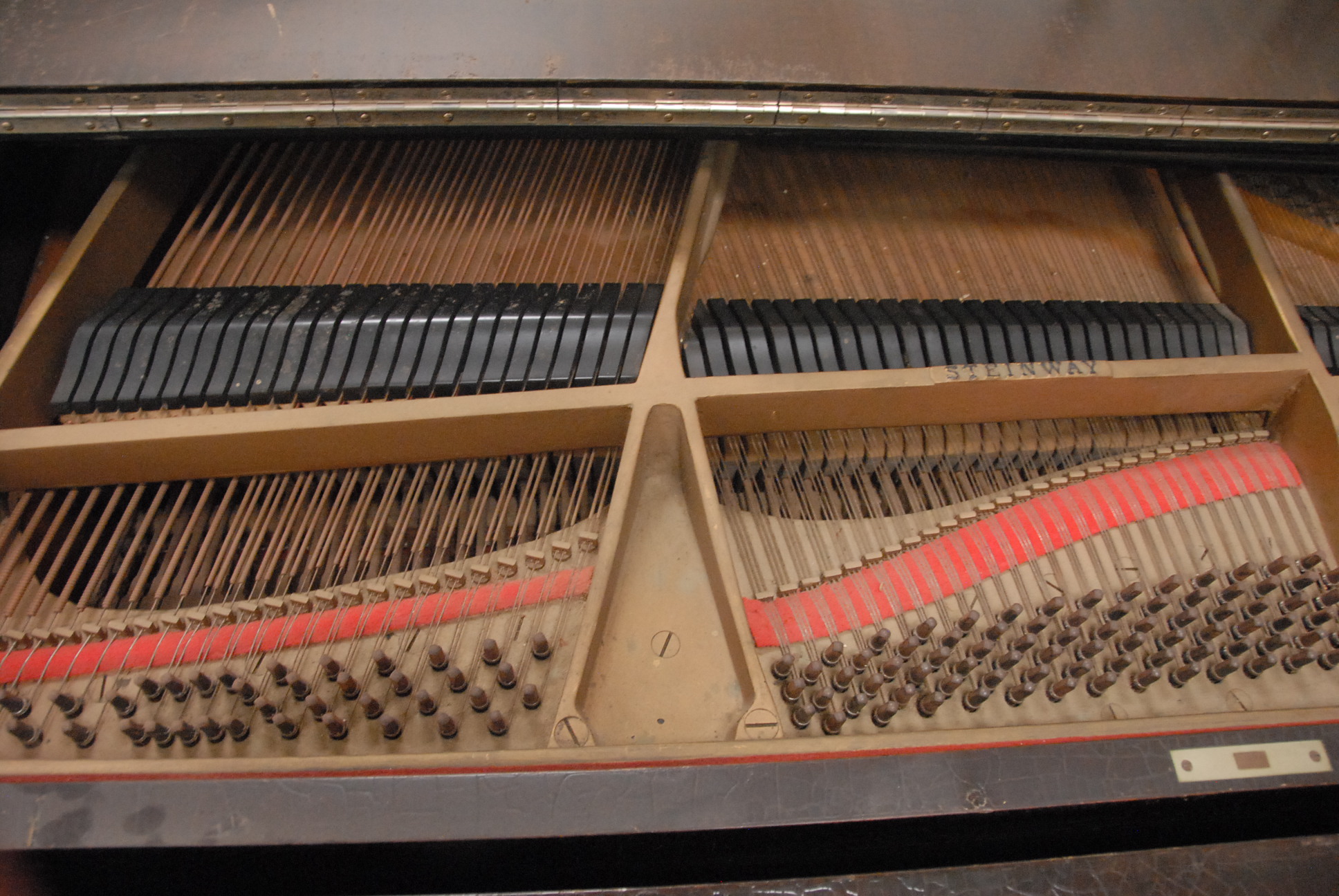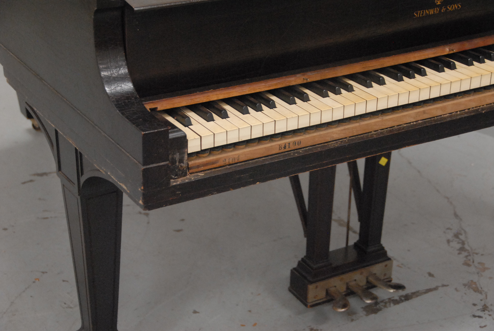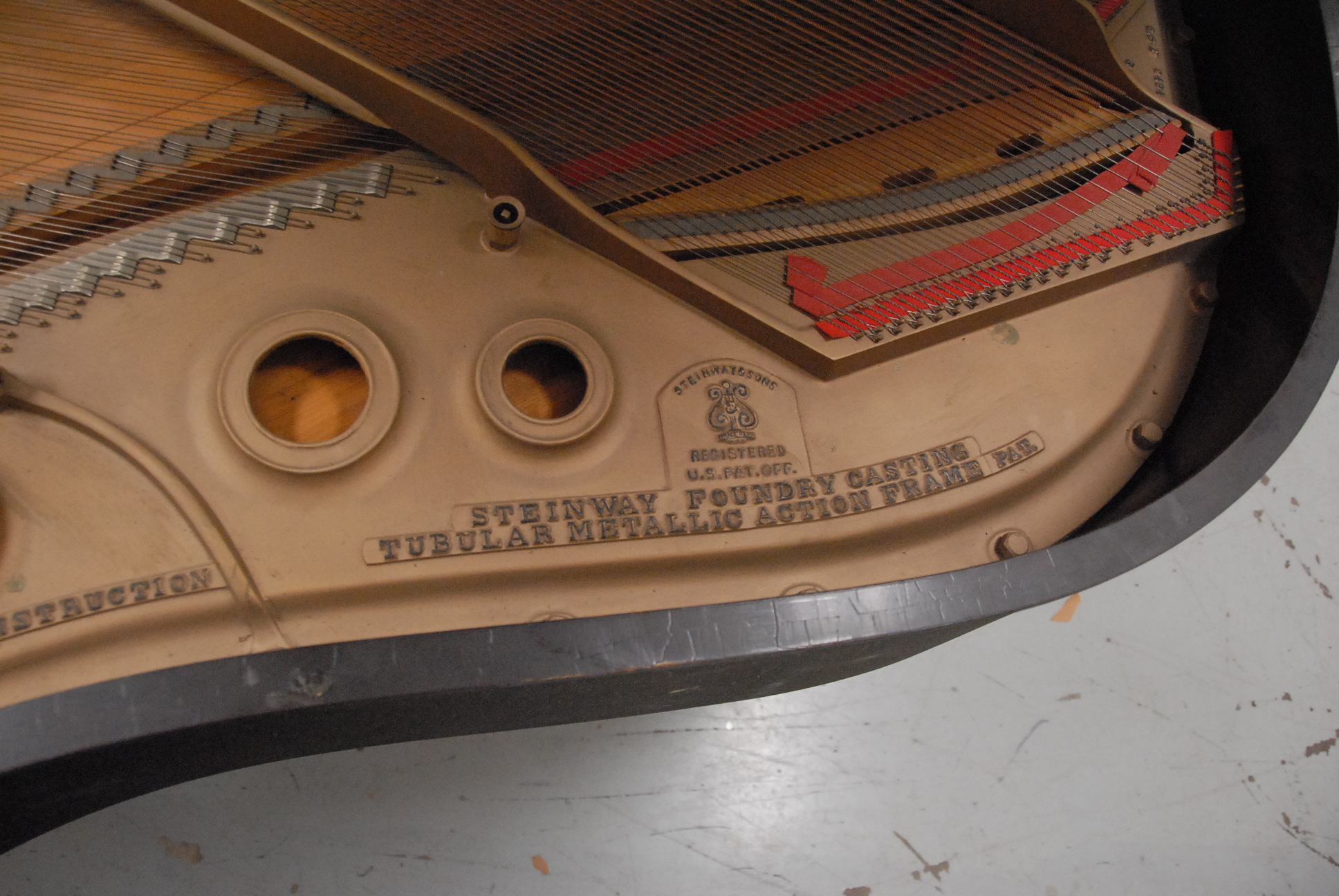 Steinway Grand Piano, mahogany case. B4100 case crazed, sound board with crack. lg. 70in.