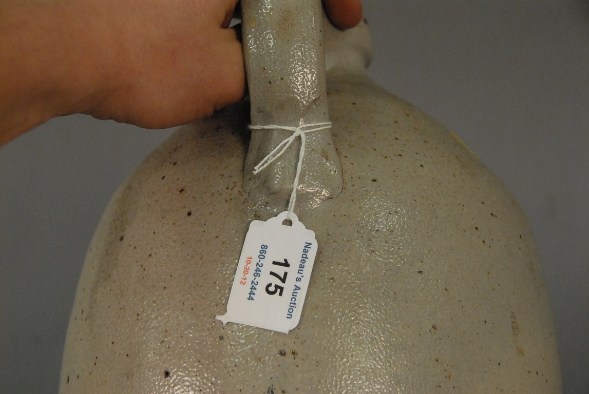 Lot 175: Stoneware two gallon crock with blue bird decoration. ht. 13in. Being sold to benefit a Connecticut Museum.