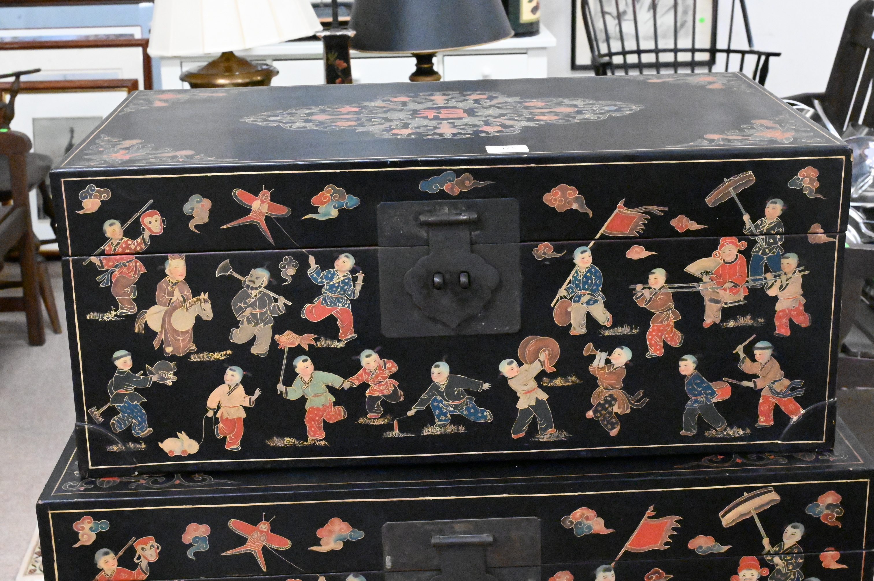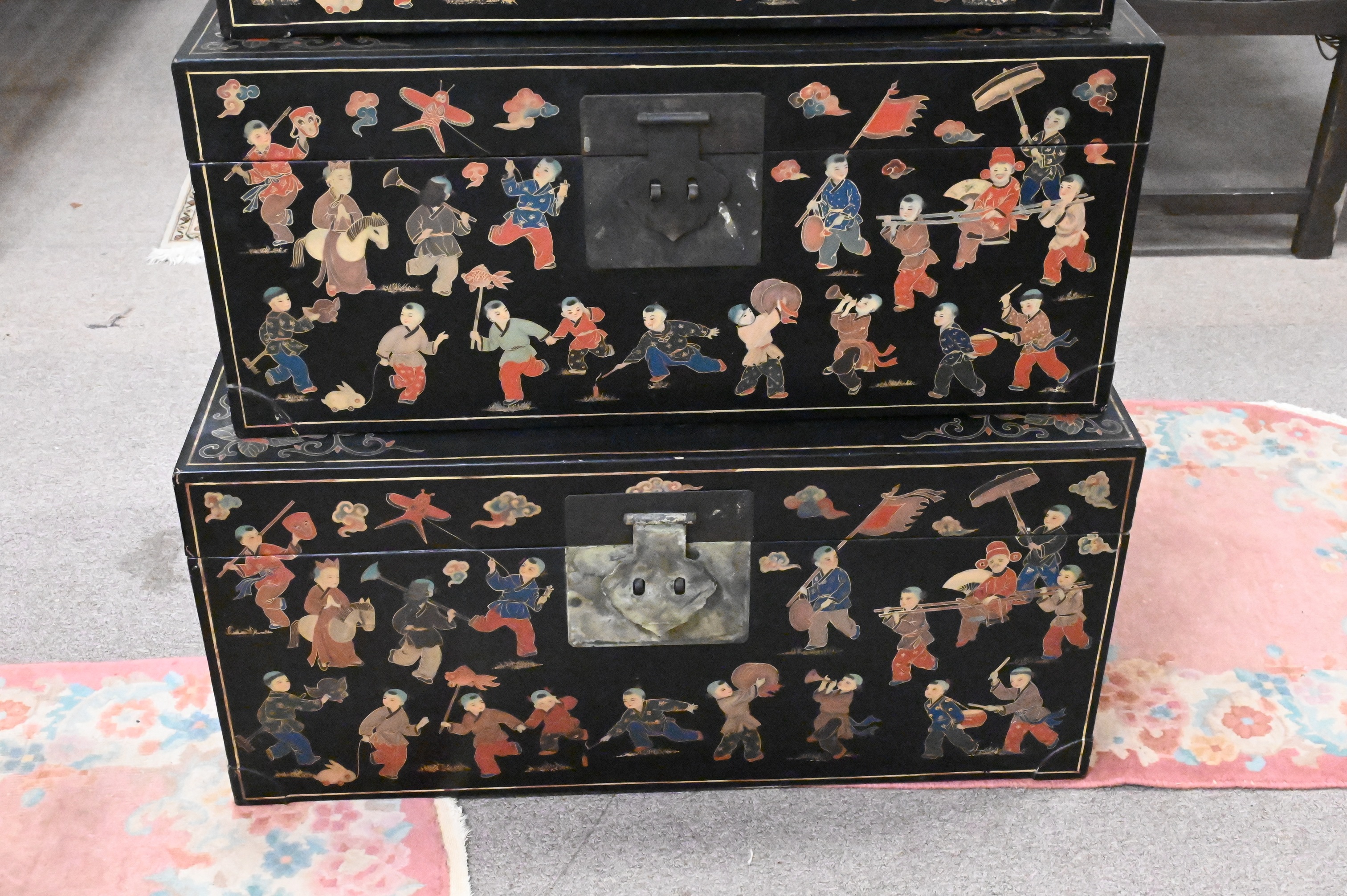 Lot 175: Three Black Lacquered Chinese Stacking Boxes