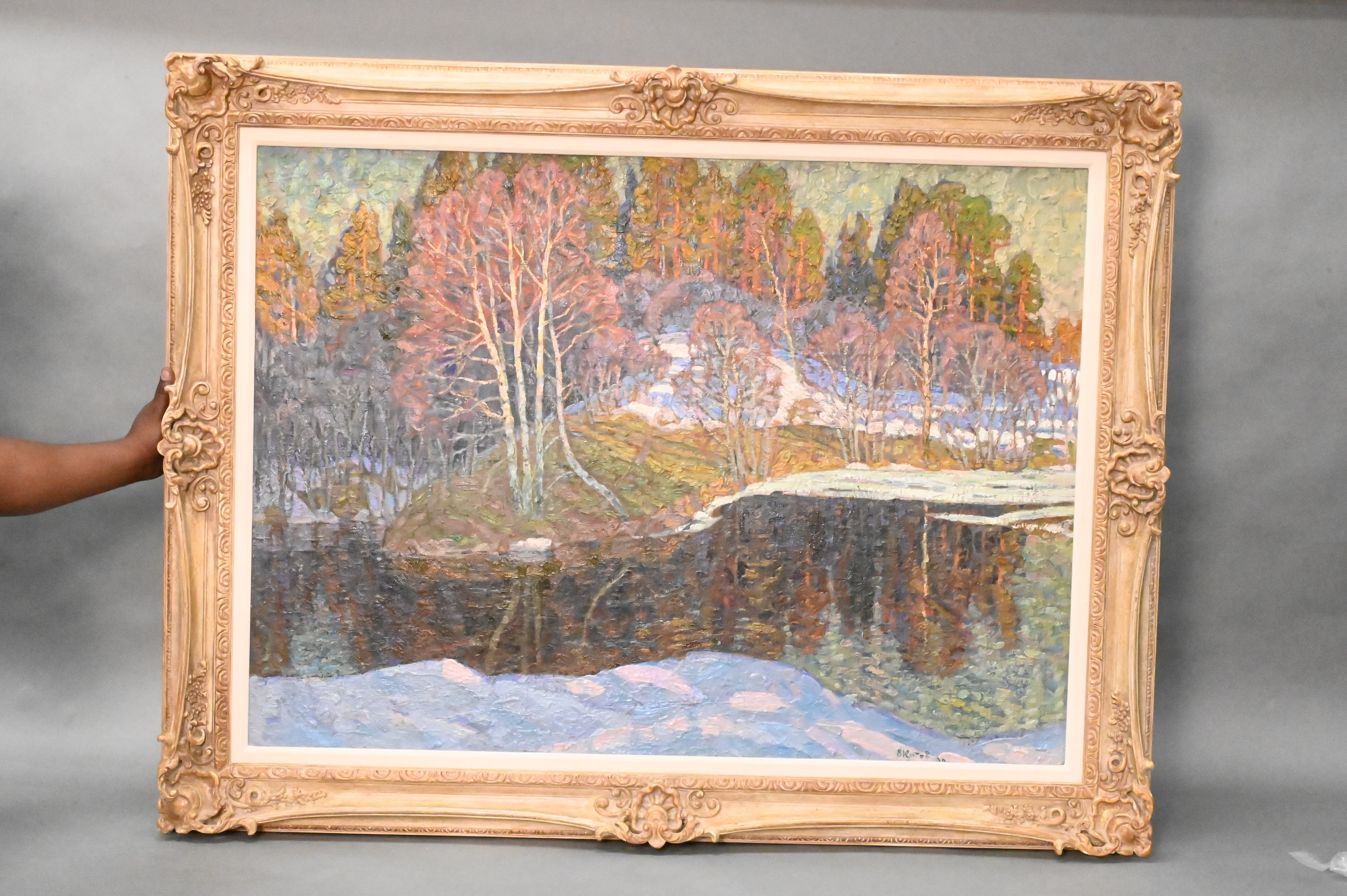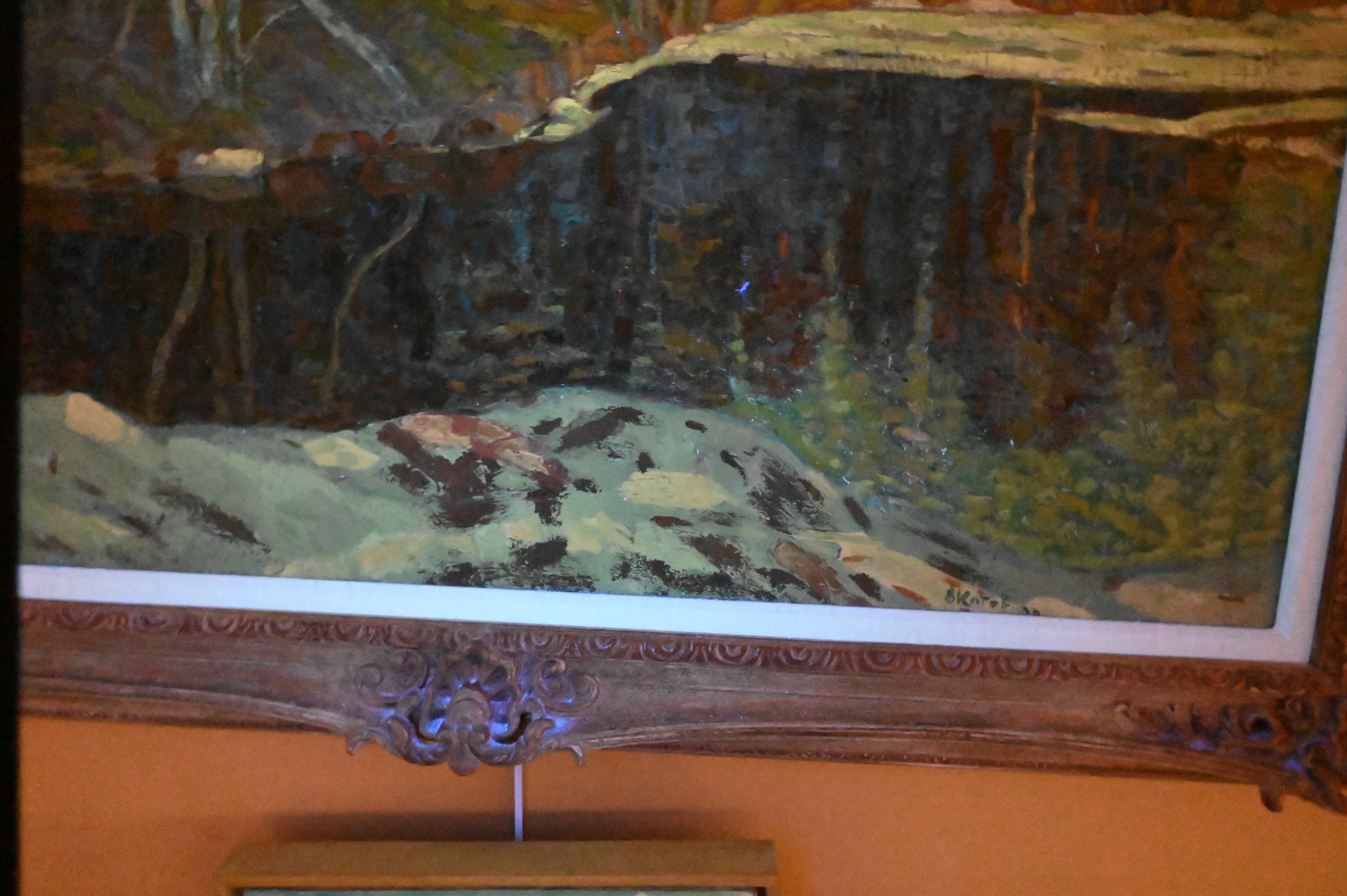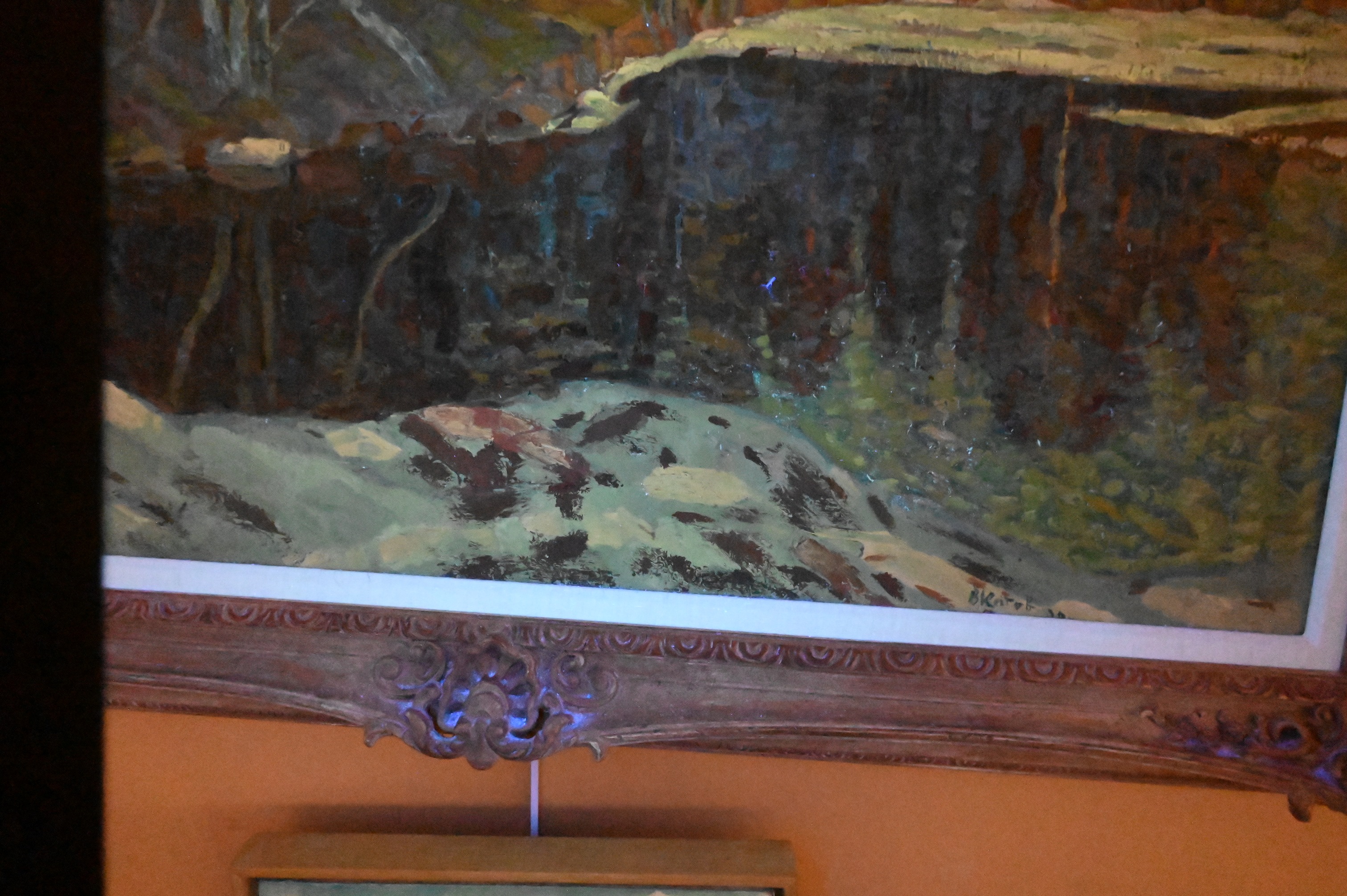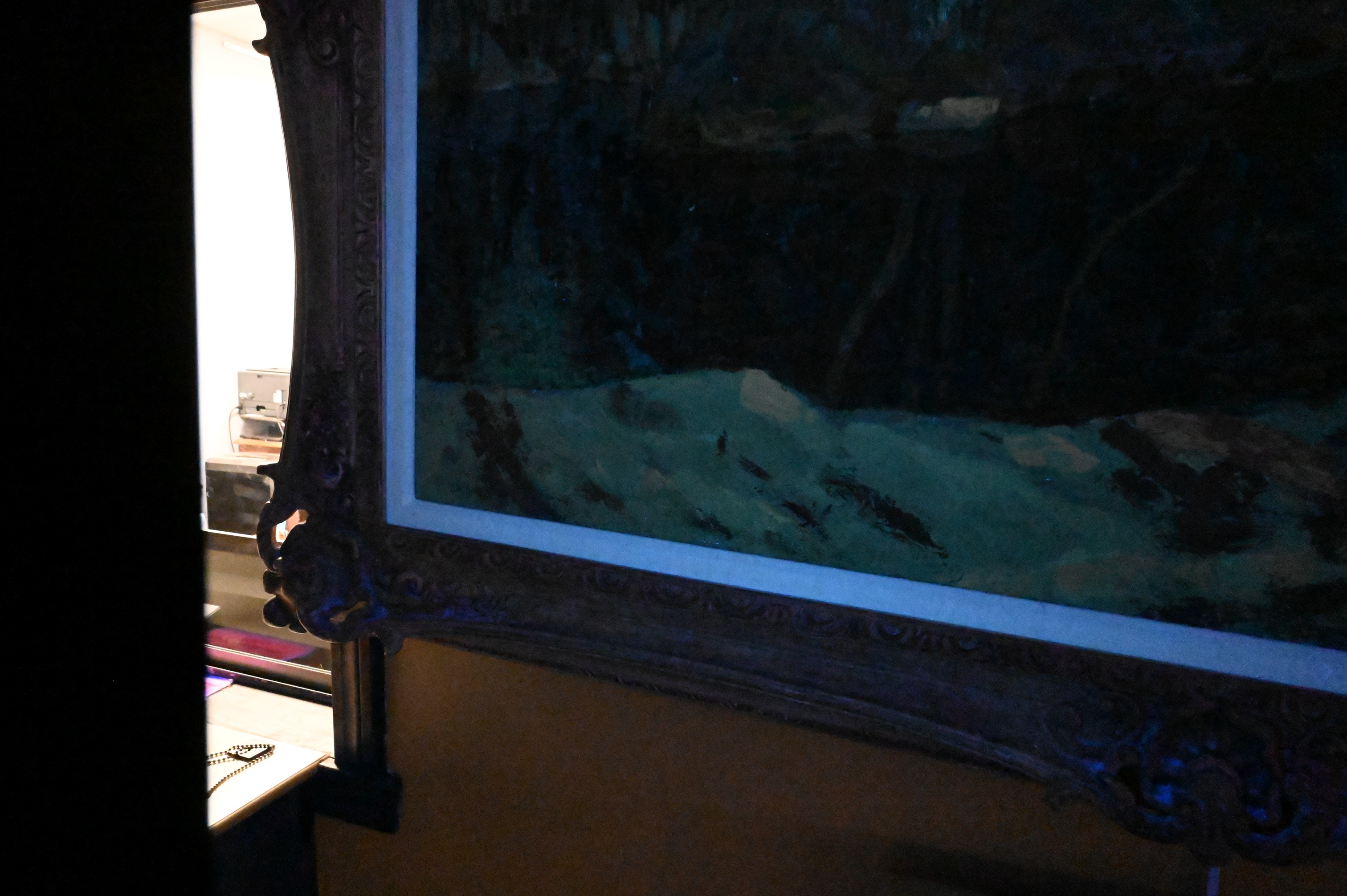Black light: heavy inpainting to snow in lower section of the piece, see photos