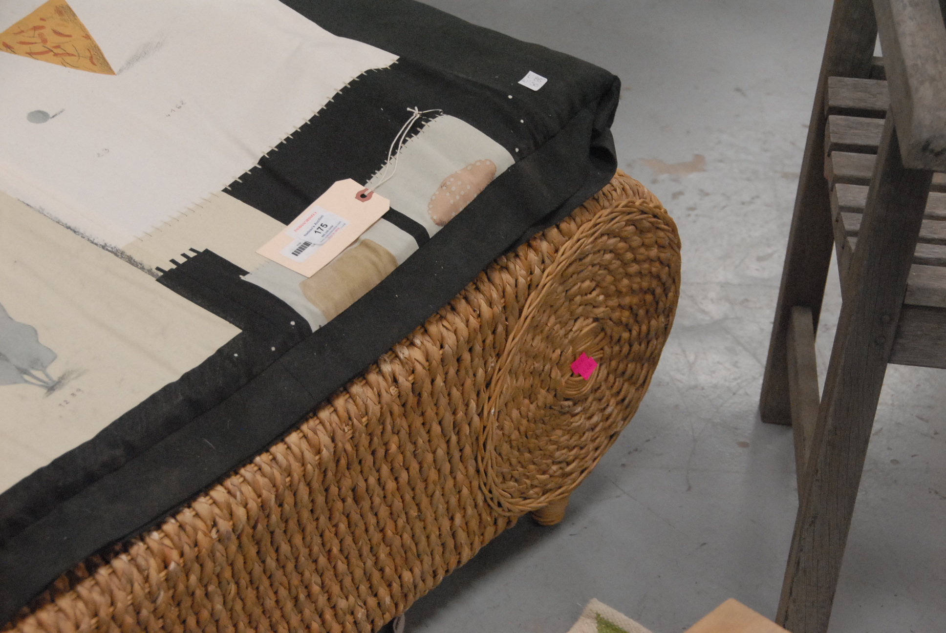Woven rattan daybed with upholstered cushion top, ht. 17in. lg. 85in. wd. 50in.