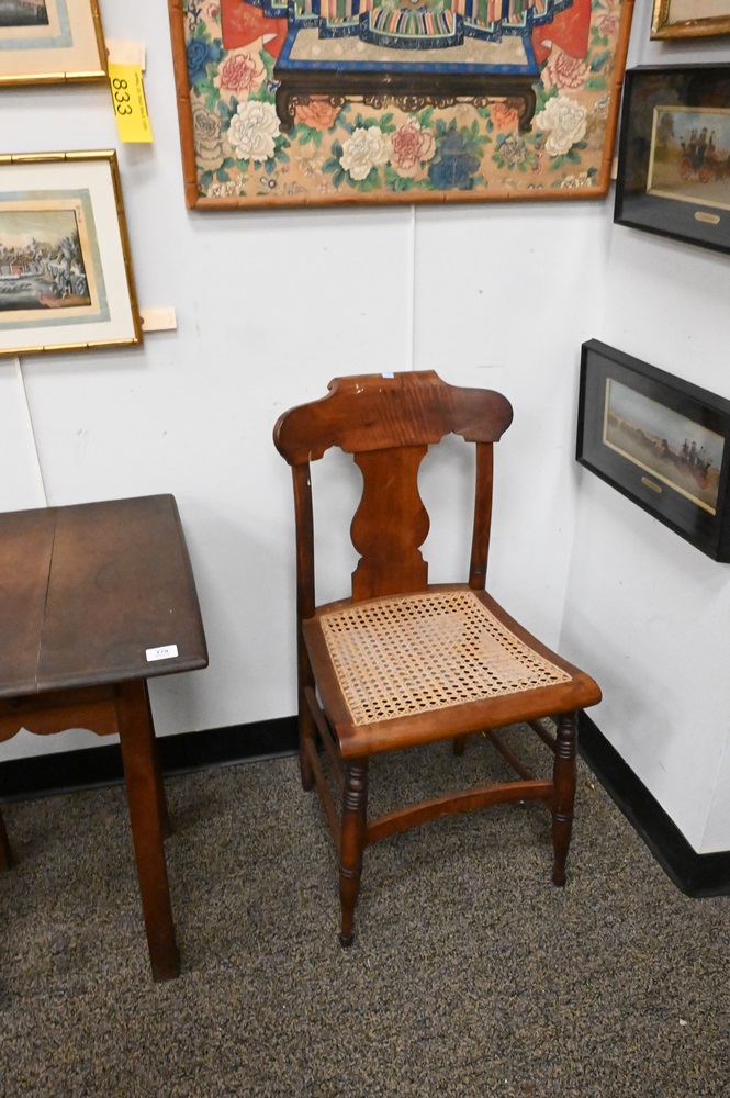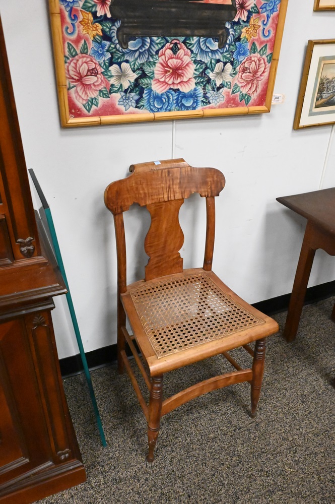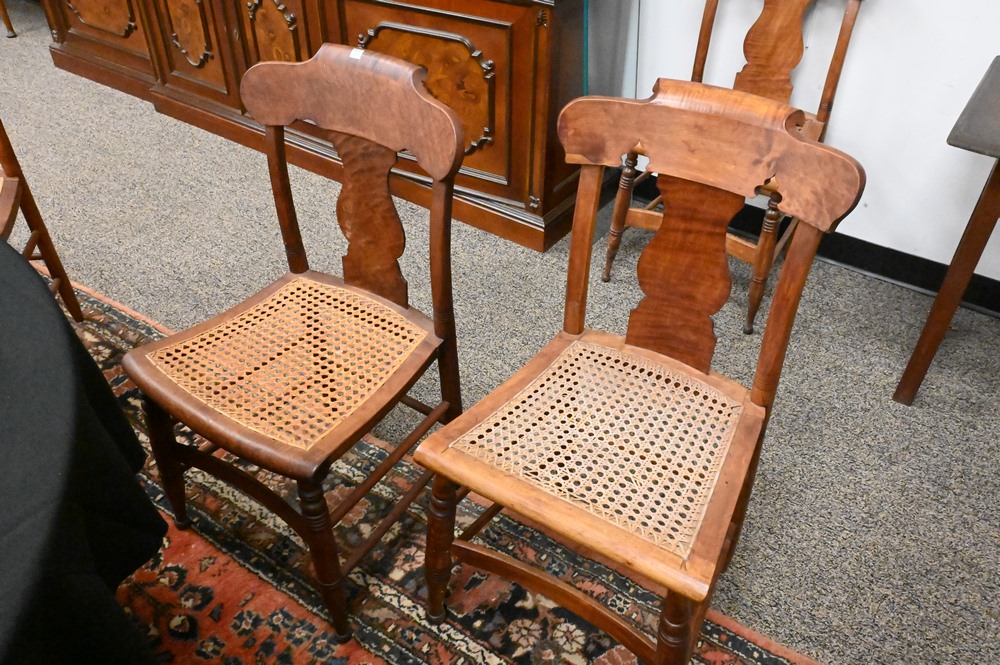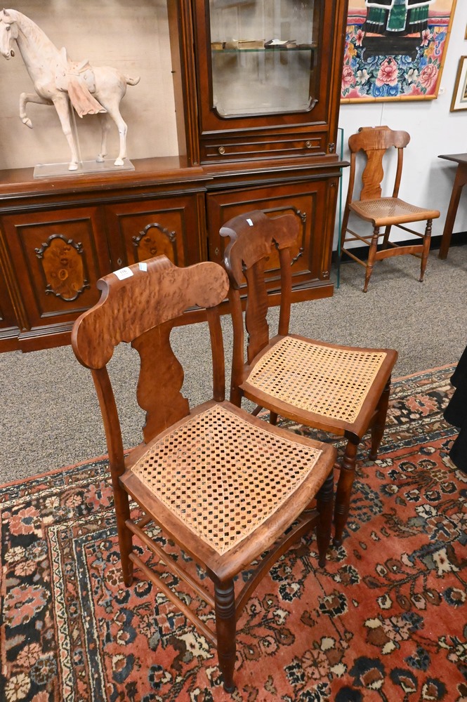 Lot 176: Assembled Set of Eight Maple Chairs, having caned seats, four of one style, four of another, height 34 inches. Provenance: Estate of Florence Yannios, Waterfront Home, Guilford, CT.