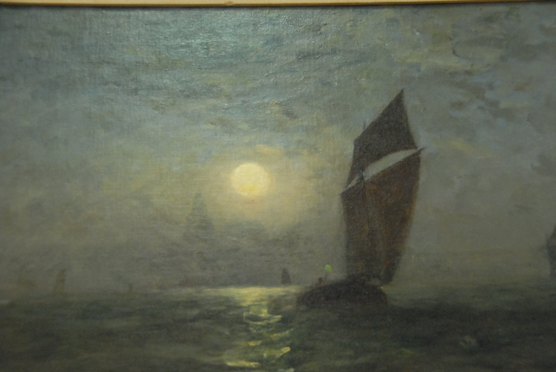 Lot 176: Dwight William Tryon 1849-1925 PARIS MOONLIGHT SEASCAPE oil on canvas signed lower left D.W. Tryon, Paris restretched and relined 16 x 24