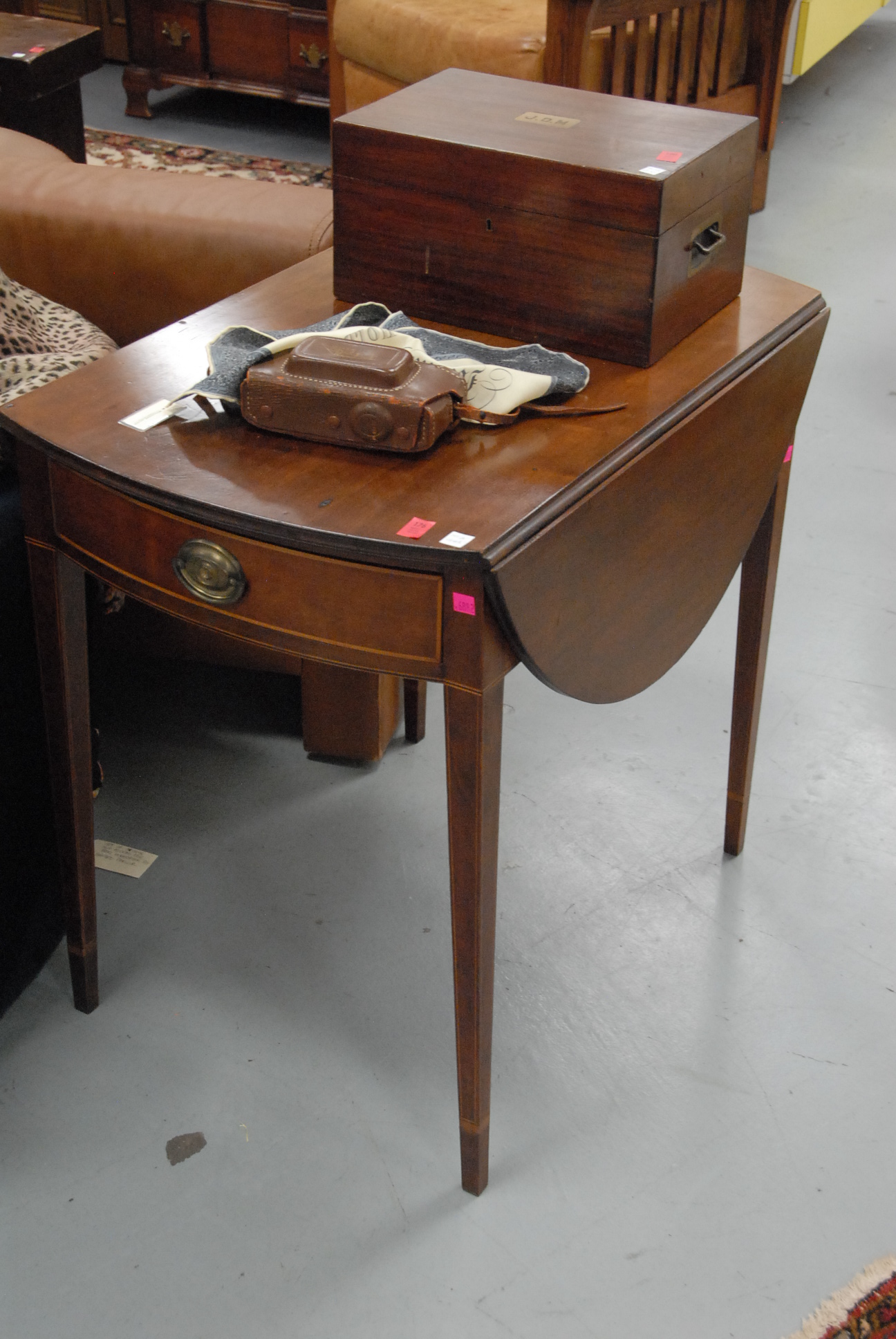 Federal cherry drop leaf Pembroke table with drawer and line inlay, circa 1790-1810.