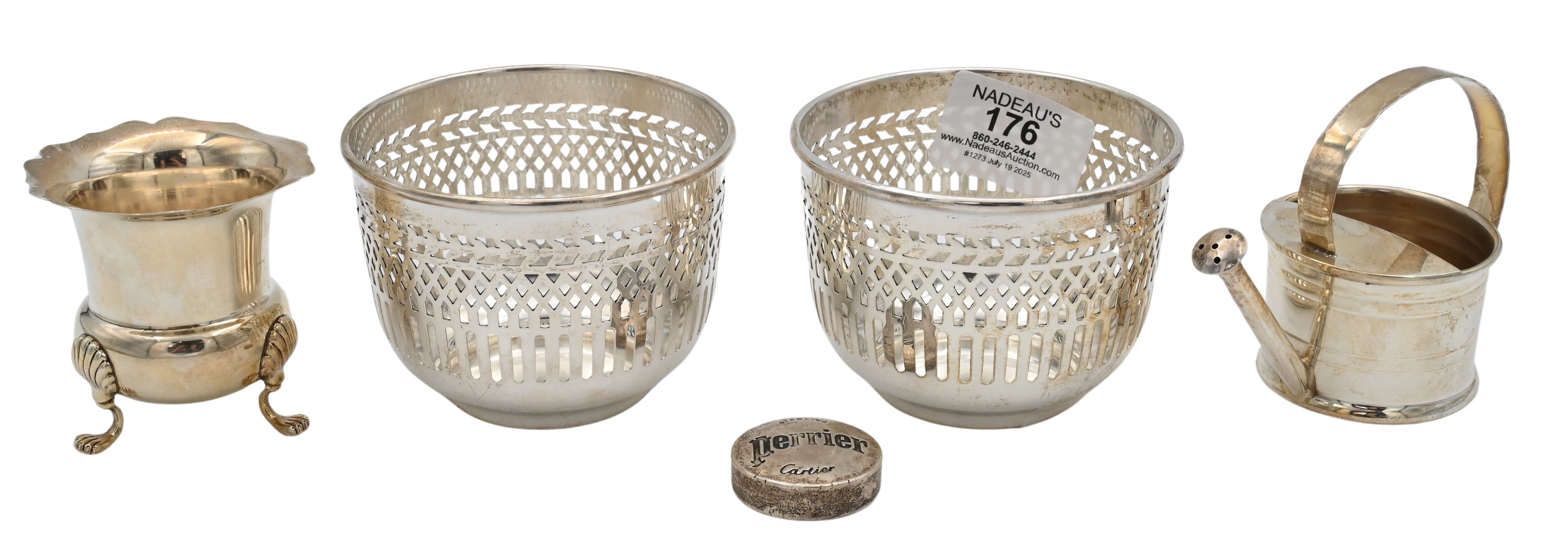 to include pair of pierced baskets, small urn form bowl, Perrier cap, and water can