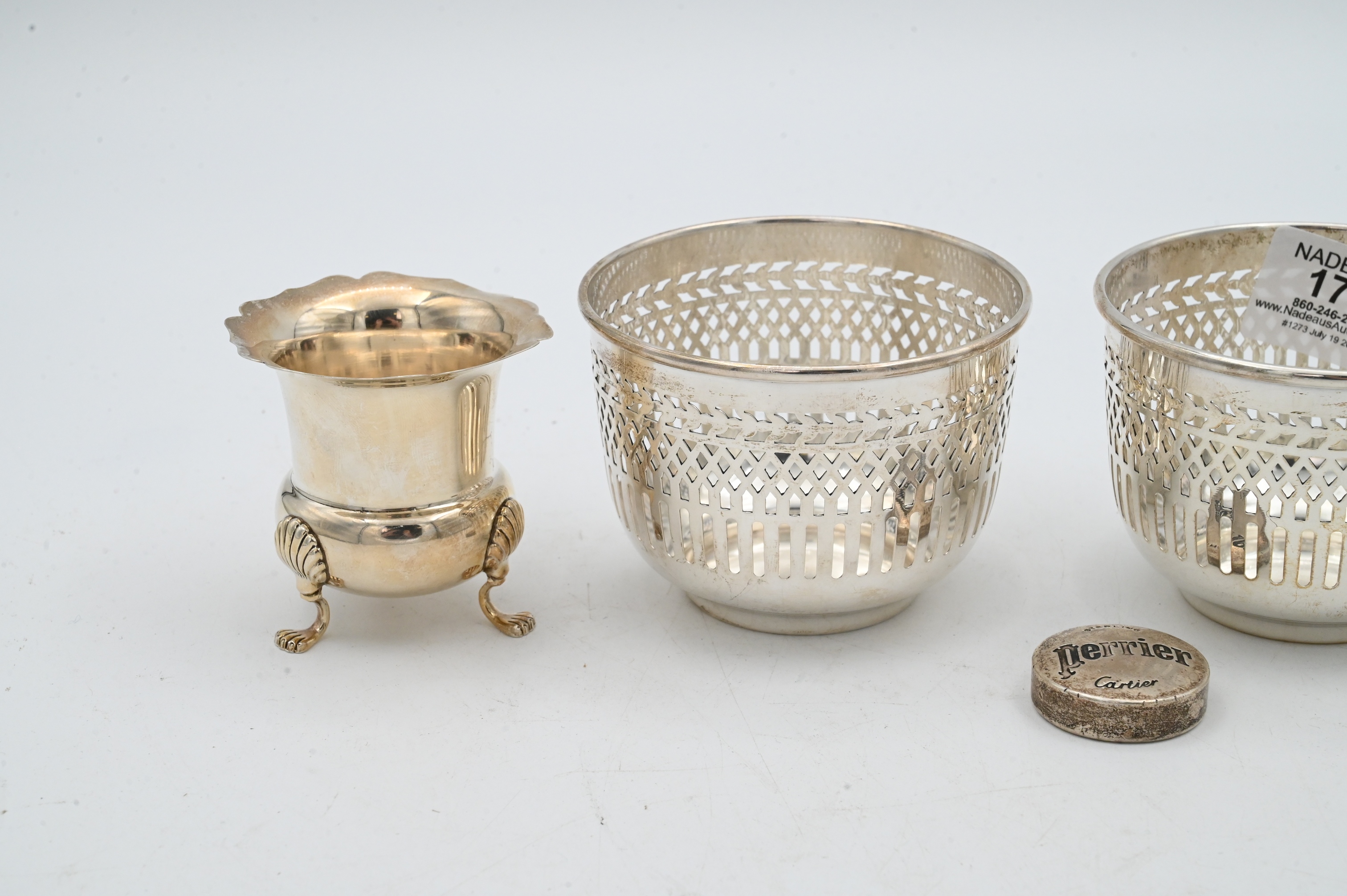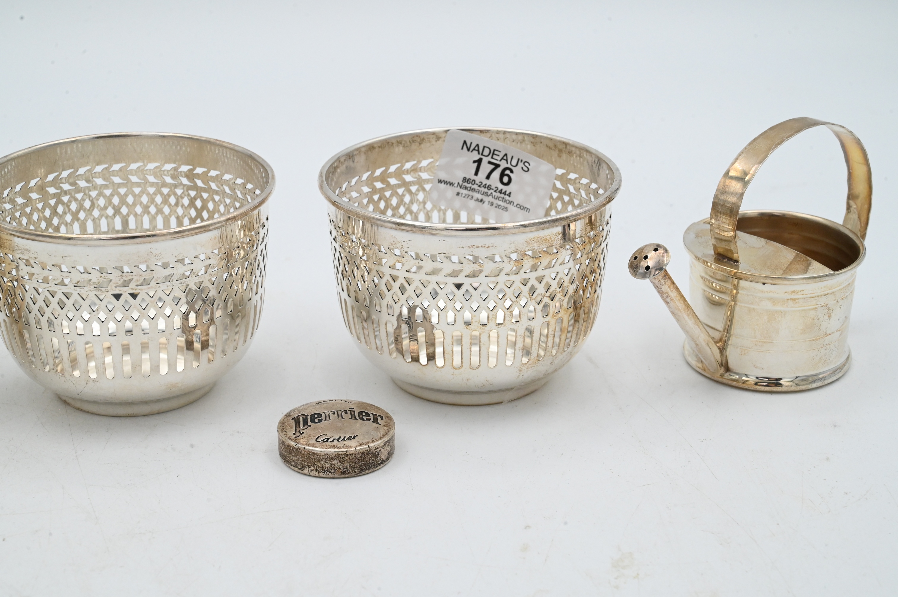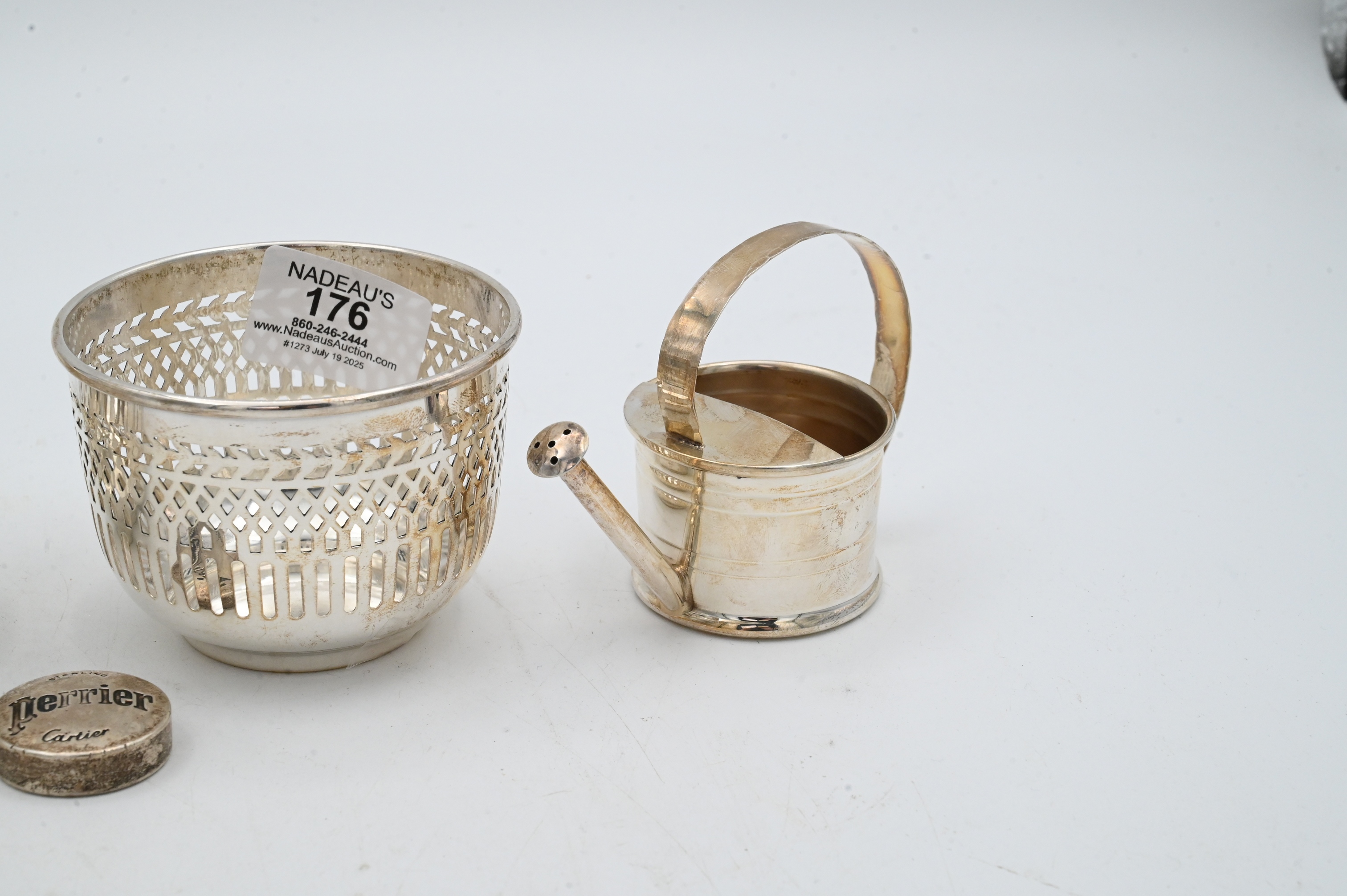 to include pair of pierced baskets, small urn form bowl, Perrier cap, and water can
