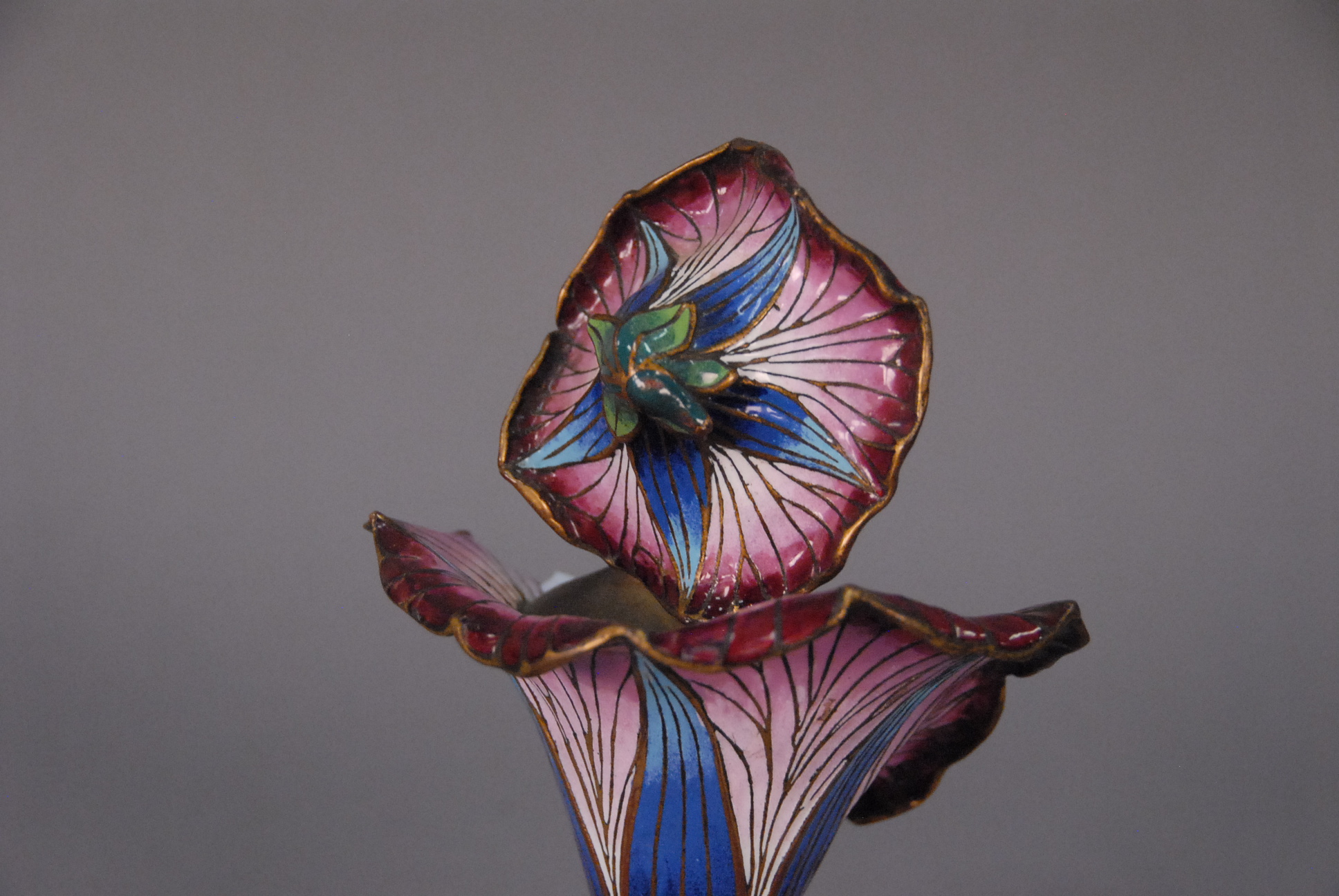 Lot 176: Henri Godet 1863-1937 art nouveau bronze and enamel bust of a woman in a flower cast after a model by Henri Godet, marked on back …