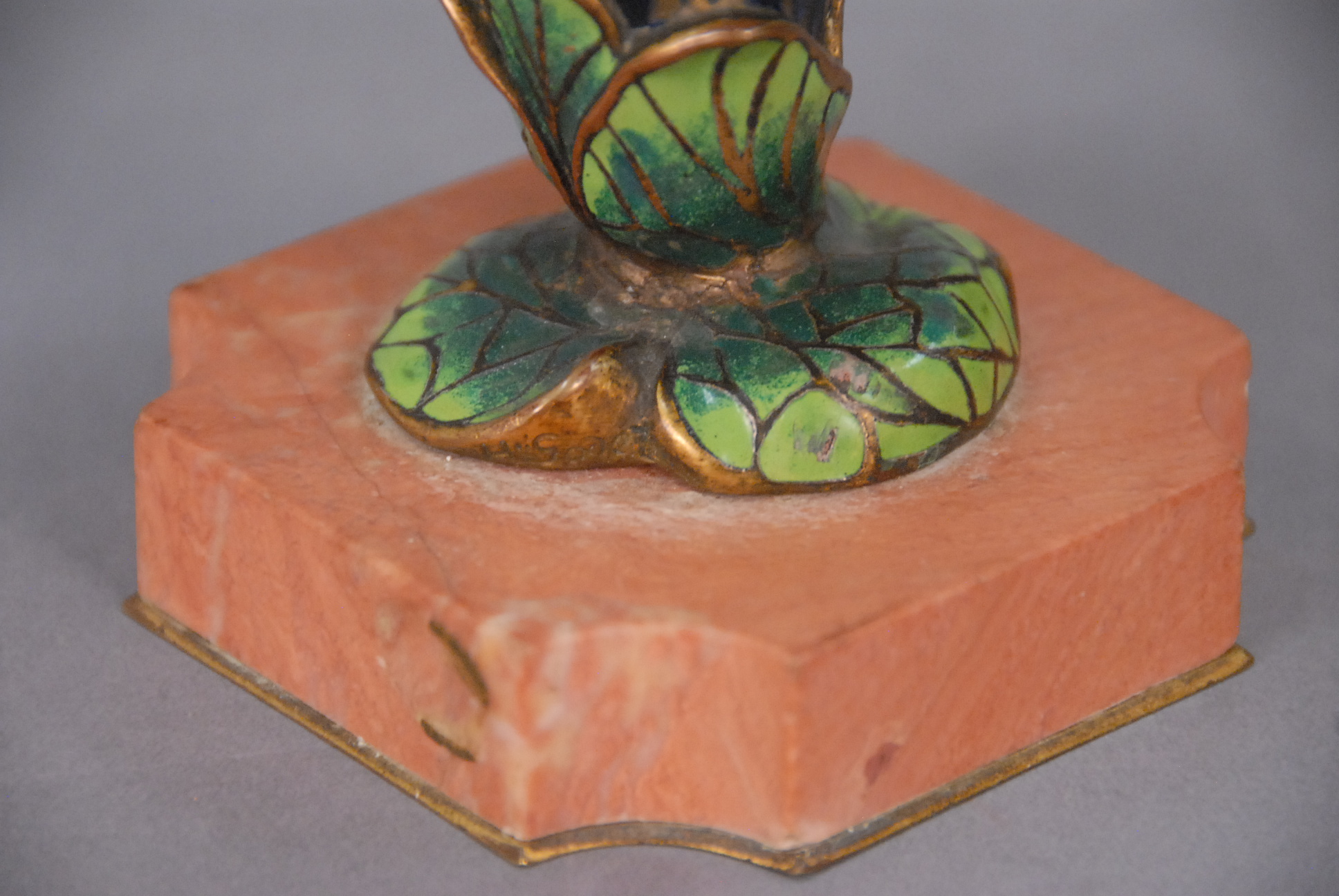 Henri Godet 1863-1937 art nouveau bronze and enamel bust of a woman in a flower cast after a model by Henri Godet, marked on back H. Godet.
