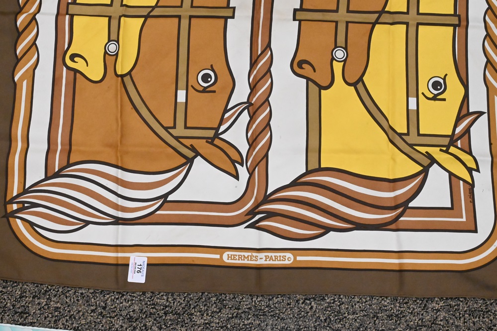 Hermes Paris “Nano Quadrige” Silk Scarf, 34″ x 34″.