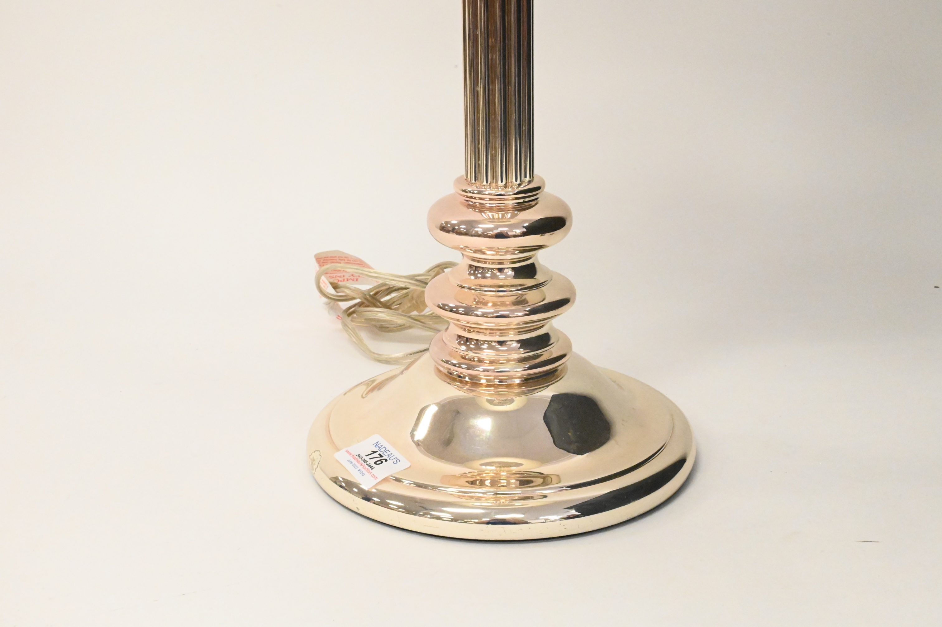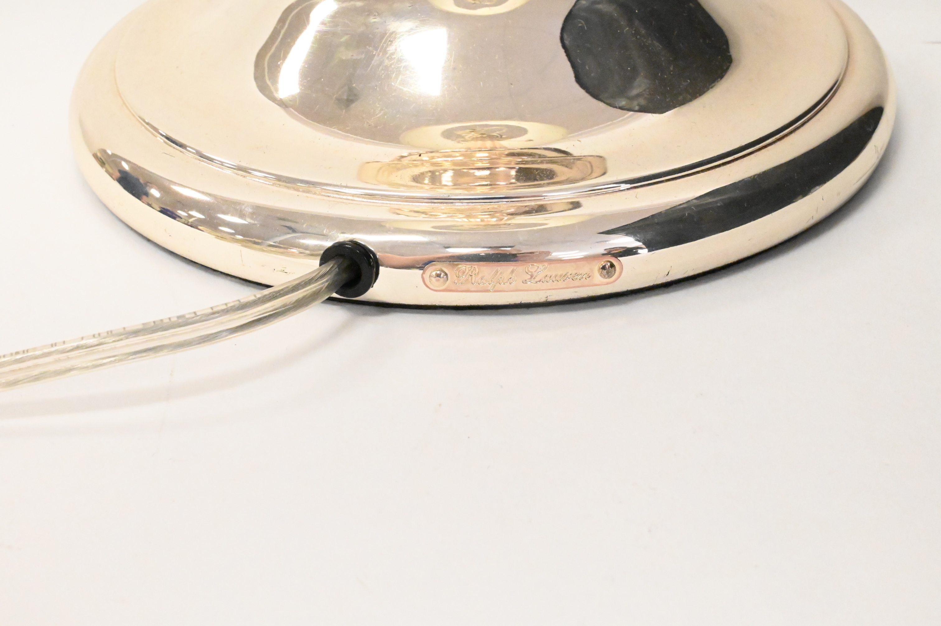 Ralph Lauren Polished Nickel Column Table Lamp with Shade (no finial), height 35 inches, Provenance: A Private Collection from Greenwich Connecticut.
