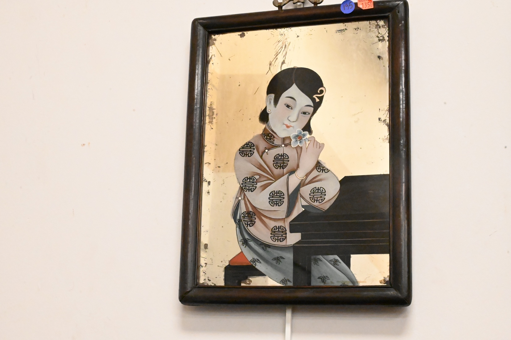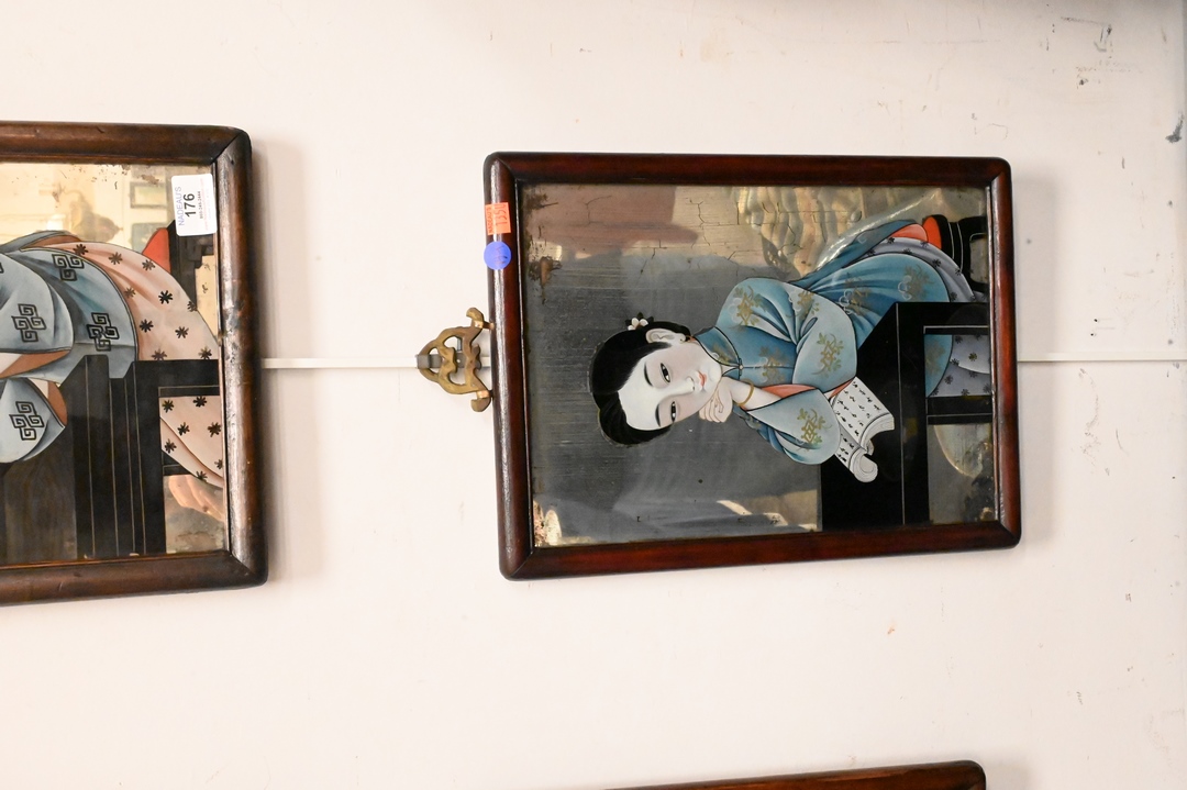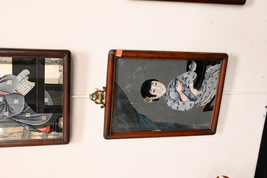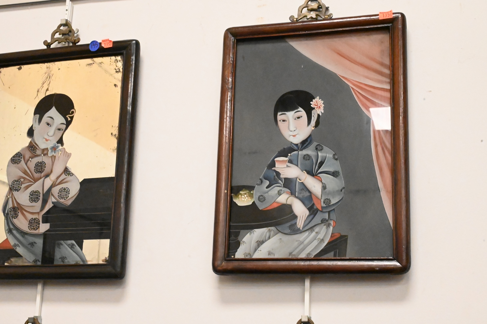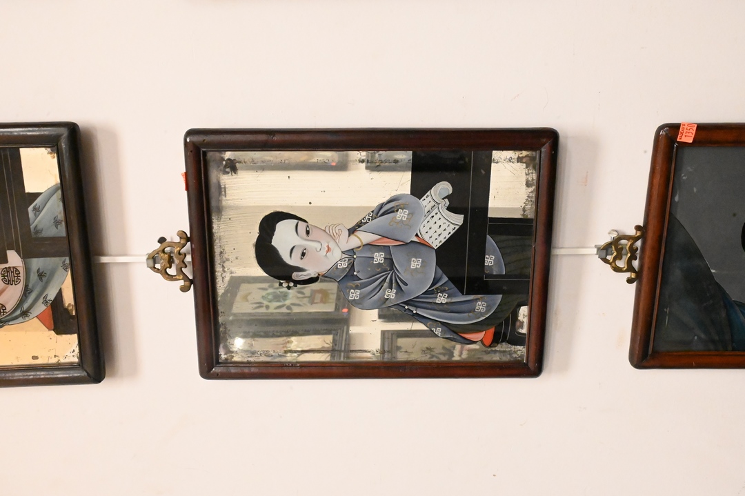 Set of Six Reverse Painted Portraits, all of young women, all framed with brass hanging bracket, 14″ x 9 1/2″.