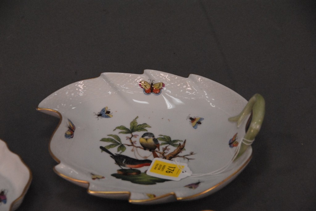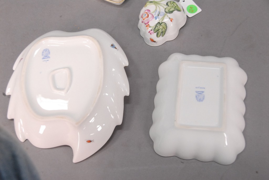 Ten piece lot of Herend leaf shaped dish, small dishes, covered dish, and coasters.