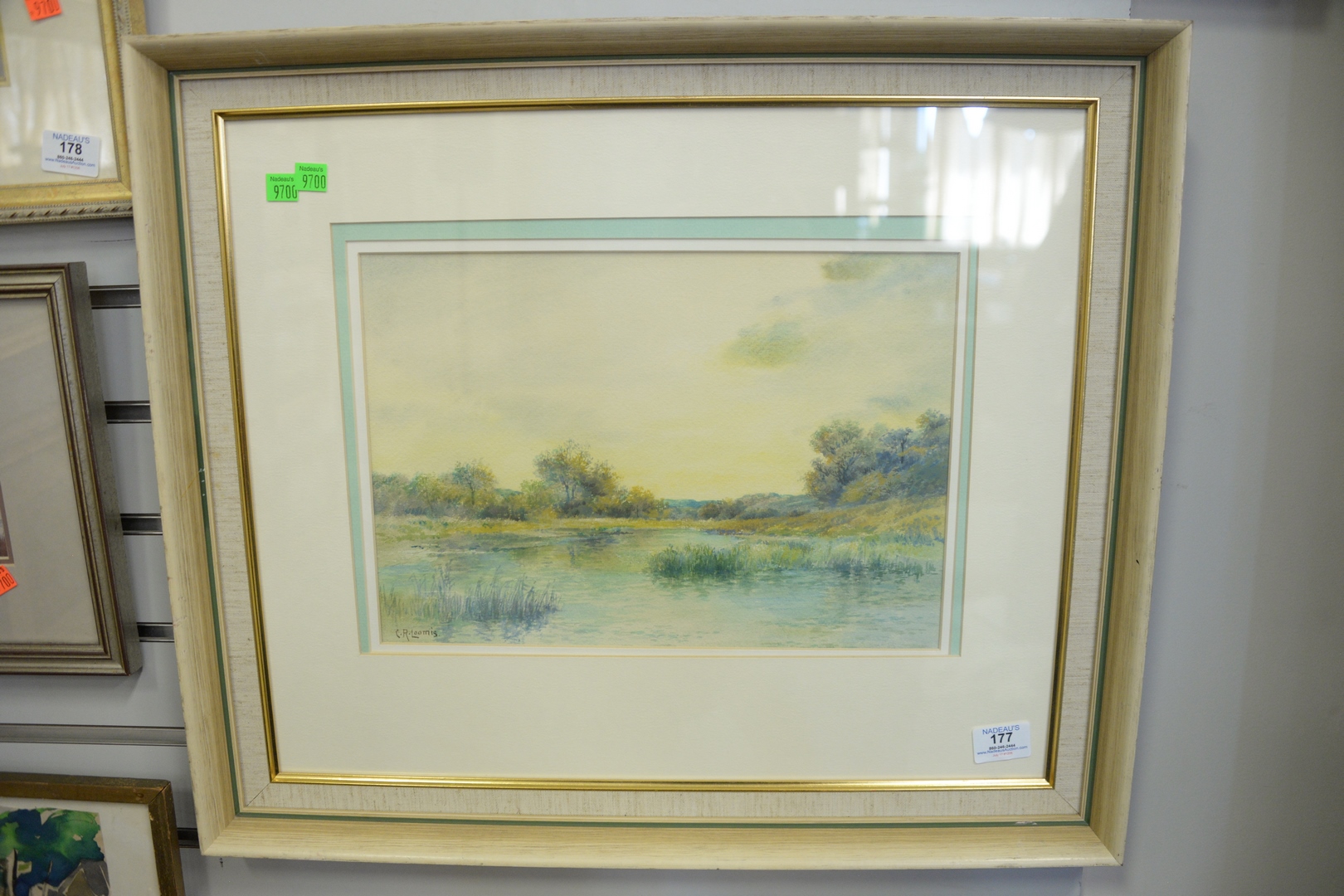Lot 177: Charles Russell Loomis (American, 1857 – 1936), Autumn in the Marsh, watercolor on paper, signed lower left “C.R. Loomis”, sight size 10″ x 14 1/2″. Provenance: Estate of James Wadhams.