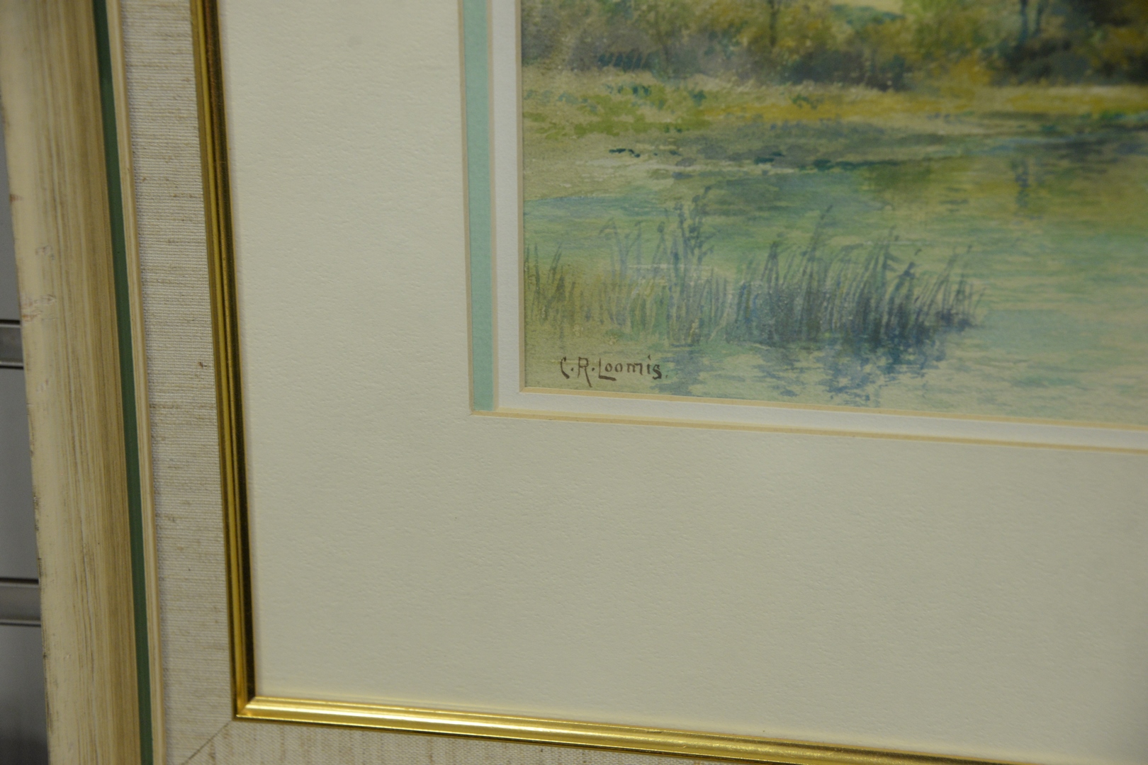 Charles Russell Loomis (American, 1857 – 1936), Autumn in the Marsh, watercolor on paper, signed lower left “C.R. Loomis”, sight size 10″ x 14 1/2″. Provenance: Estate of James Wadhams.