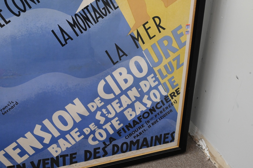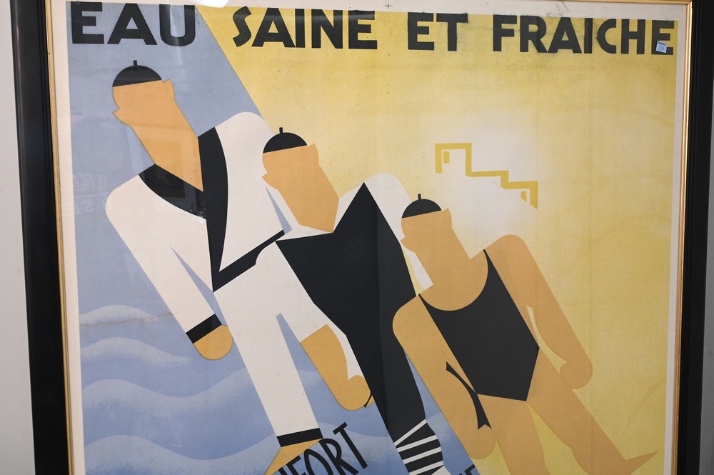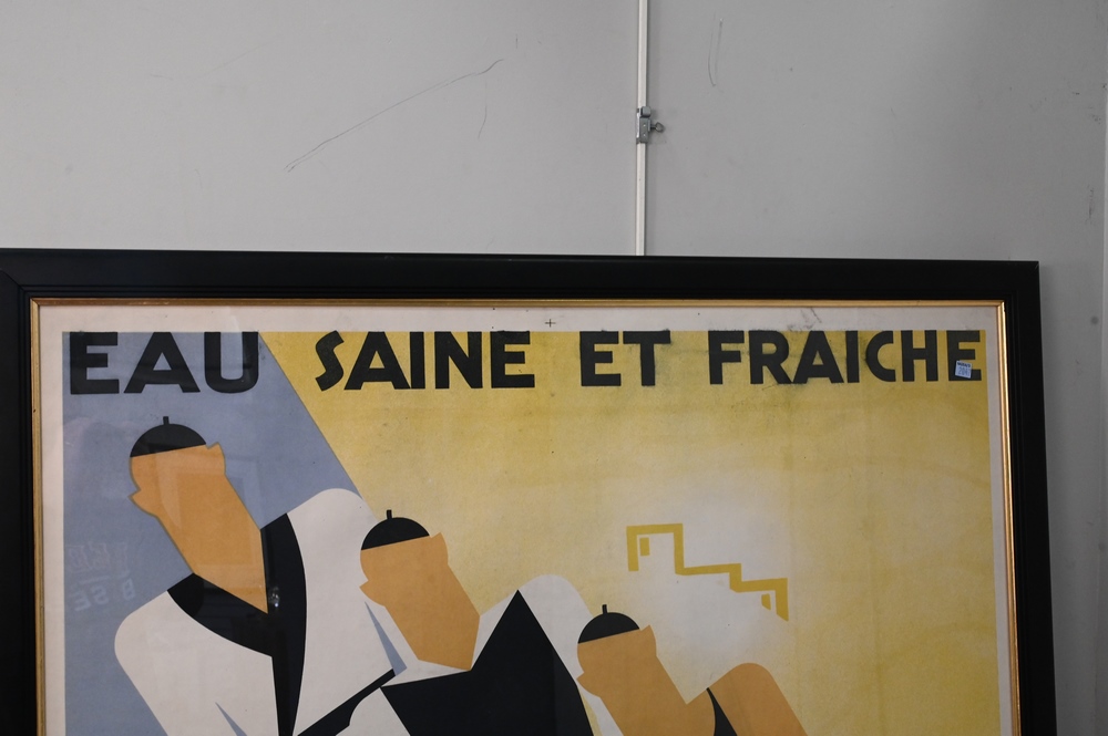 Lot 177: Francis Bernard, large poster, “Eau, Saine and Fraiche”, extension et Cibo, original 1932, 70″ x 50″.