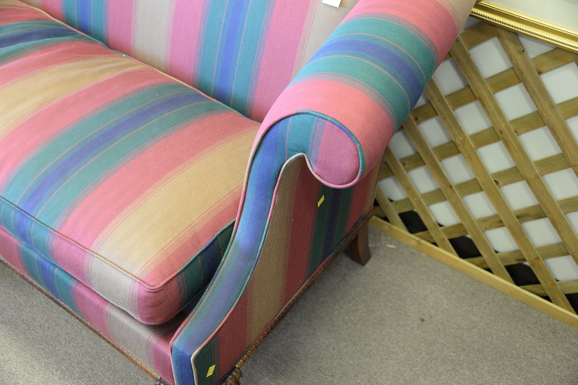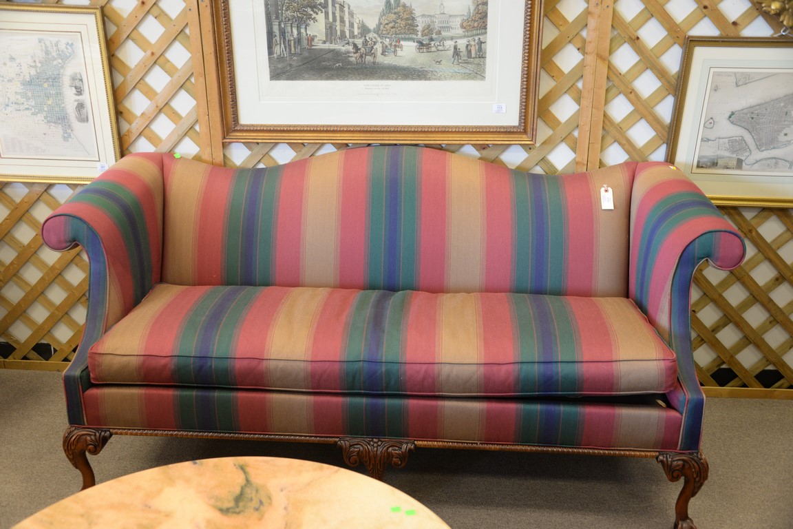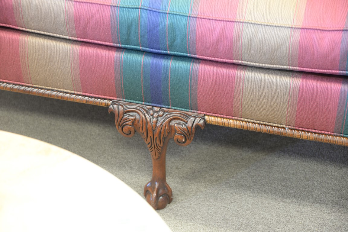 Southwood Chippendale style upholstered loveseat with ball and claw feet. lg. 75in.