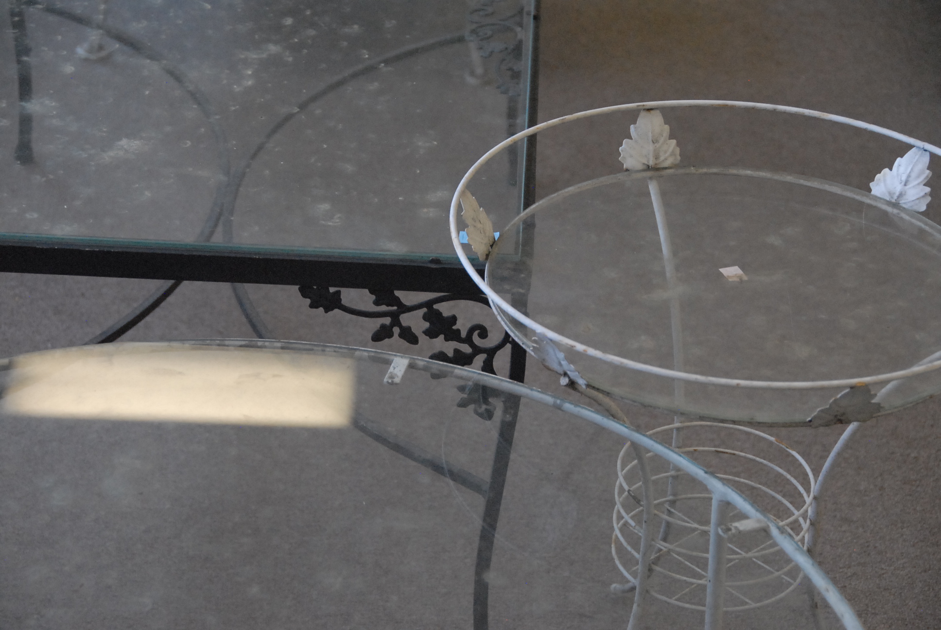 Lot 177: Three glass top tables, one attributed to Woodard.
