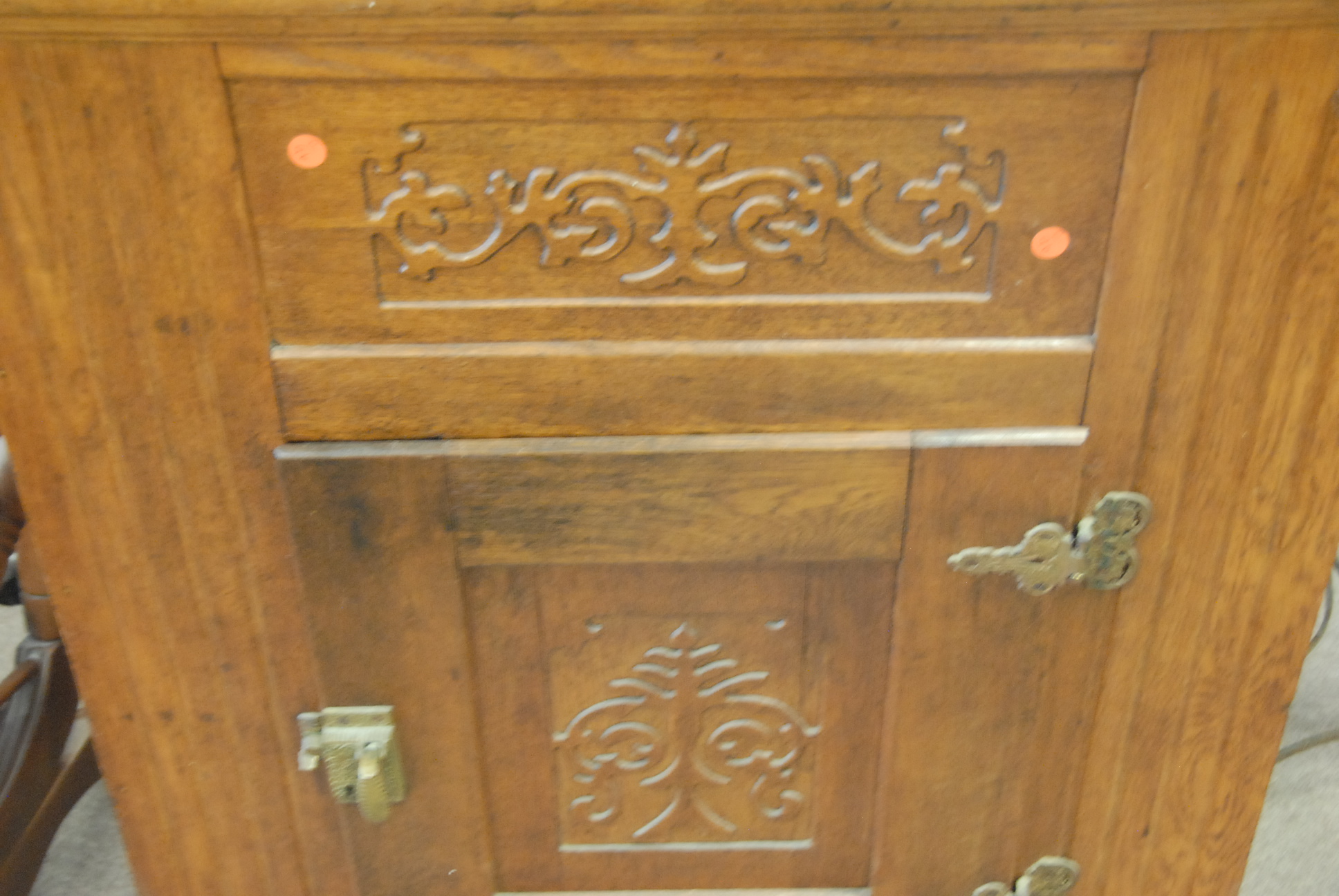 Victorian oak lift top ice box.