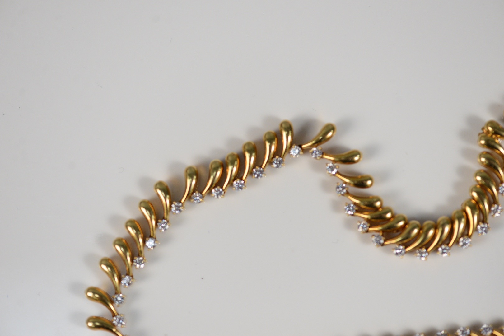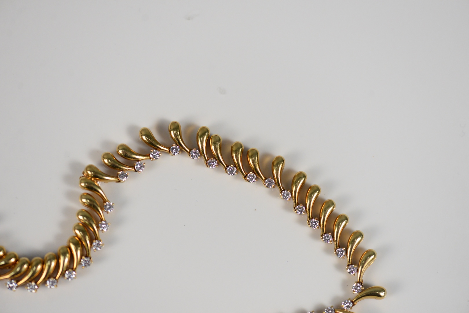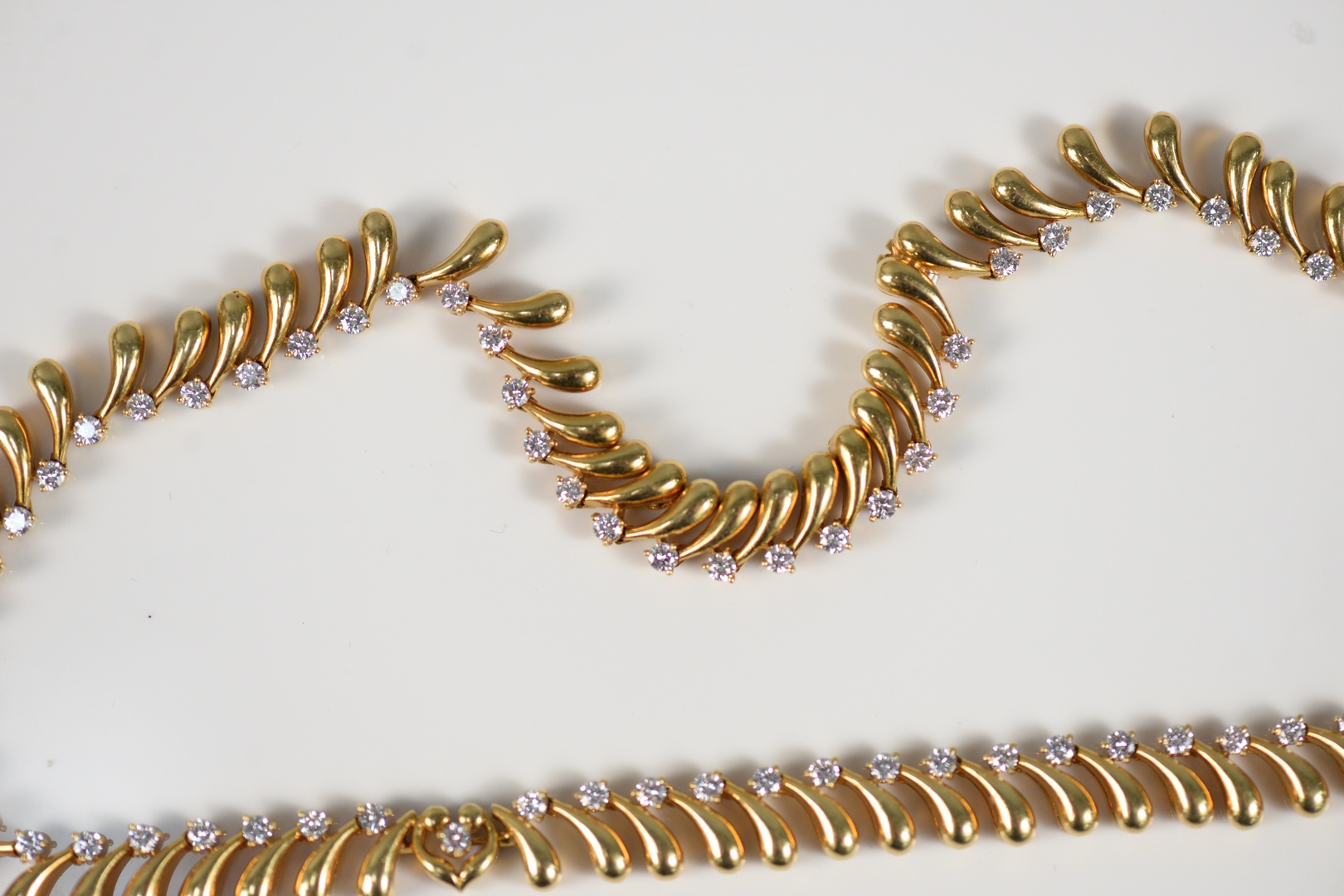 Lot 178: 18 Karat Yellow Gold Necklace set with seventy-three diamonds length 15 1/2 inches 69.8 grams