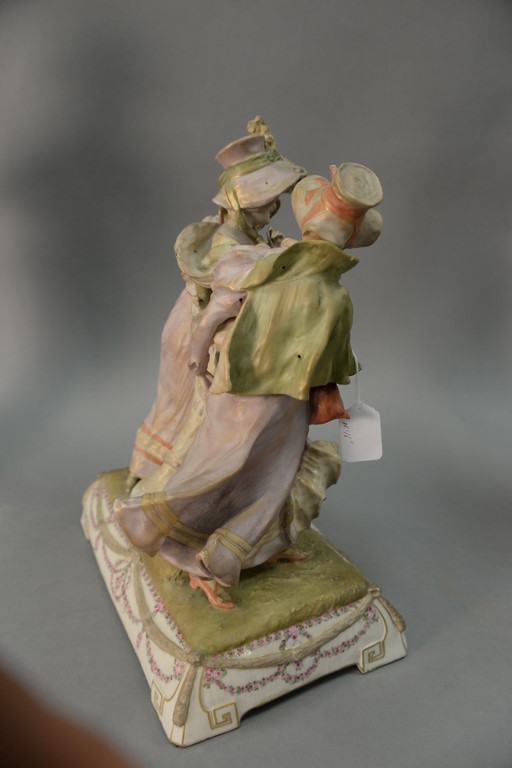 Amphora triple figural group Anno 1800 having three women in Victorian dresses marked Amphora 1346. ht. 16in., lg. 12in.