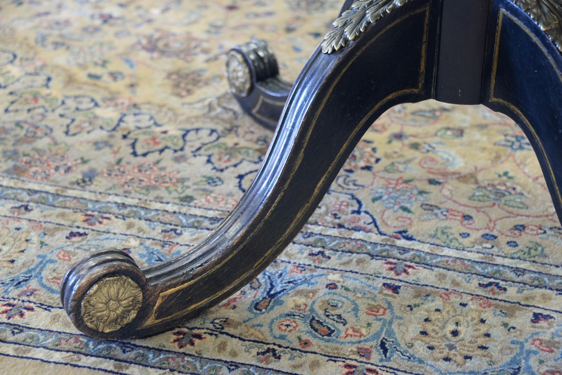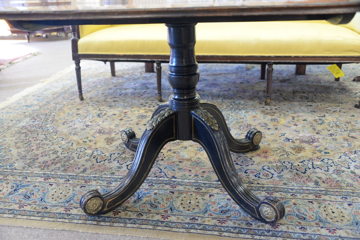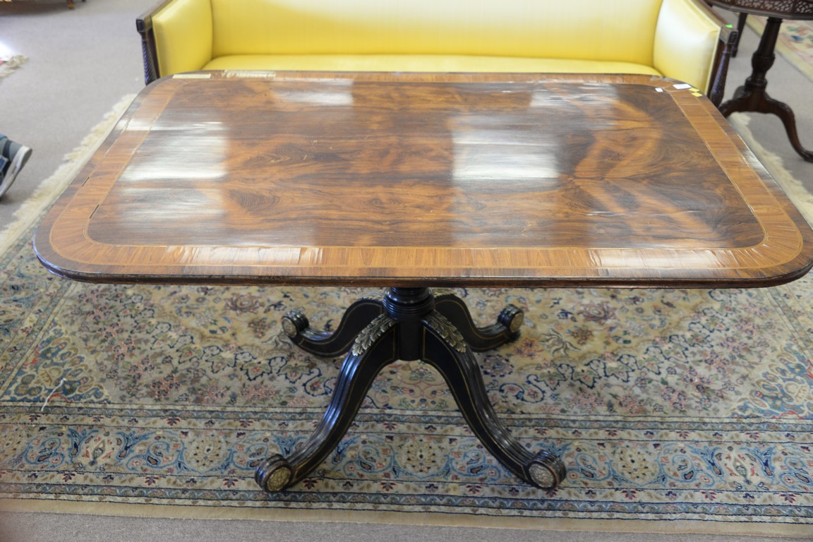 Burlwood breakfast tip table on base with brass mounts, 19th century. top: 36 x 54