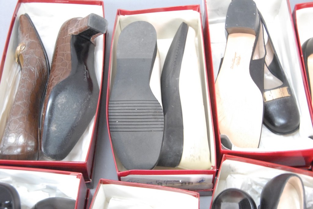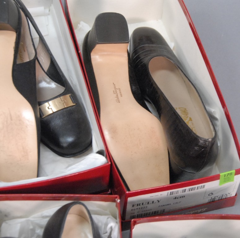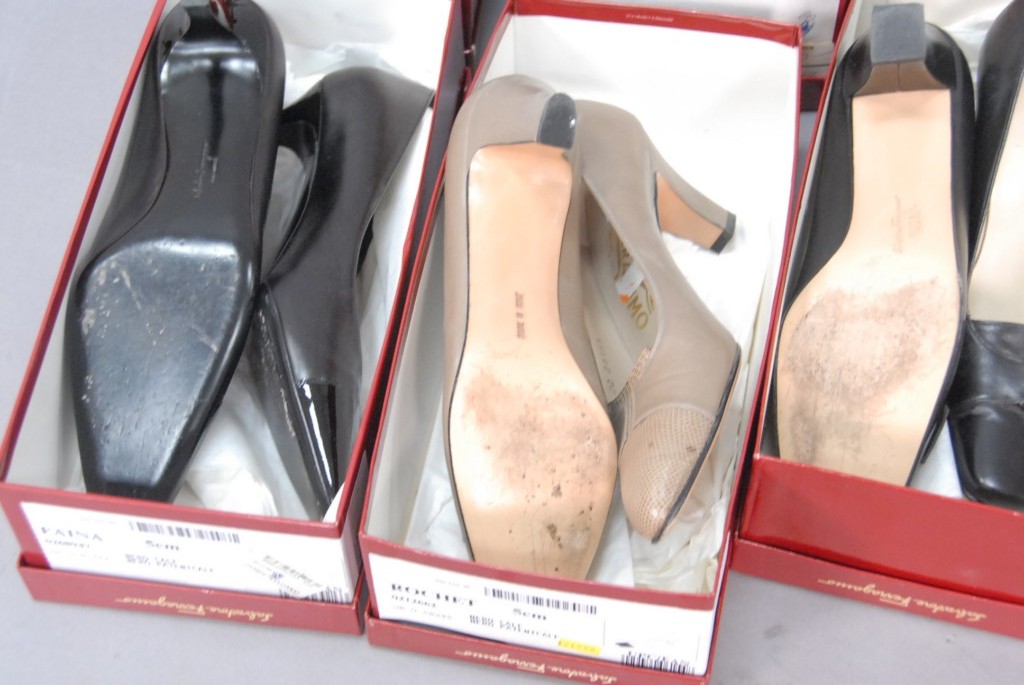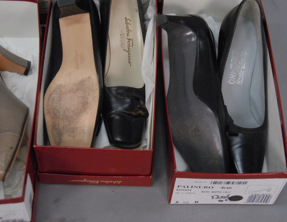 Eight pairs of Salvatore Ferragamo shoes, slightly worn, size 8 – 9.