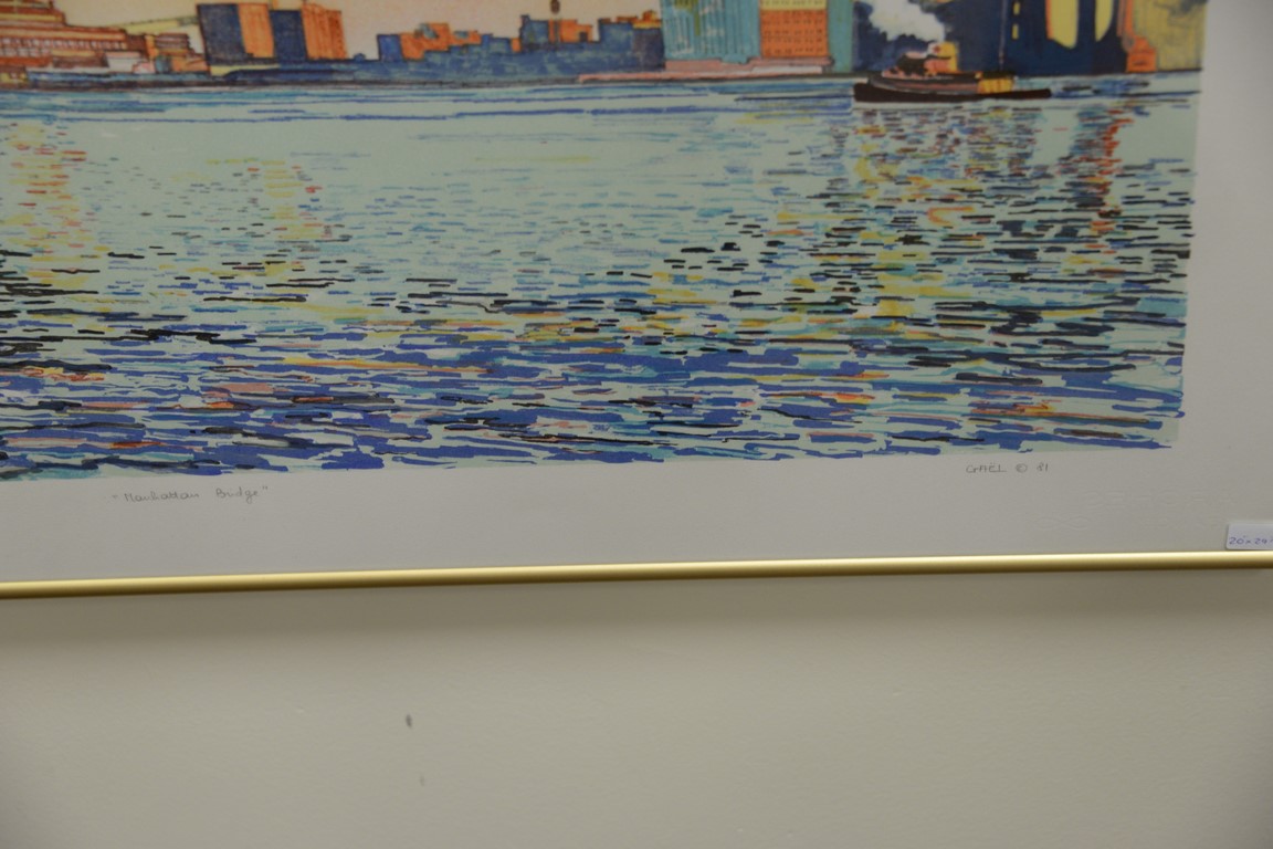 Gael, pencil signed lithograph Manhattan Bridge, 30/275, 20 x 30.