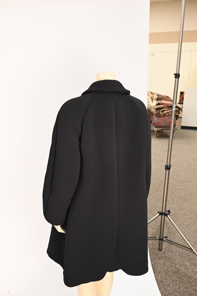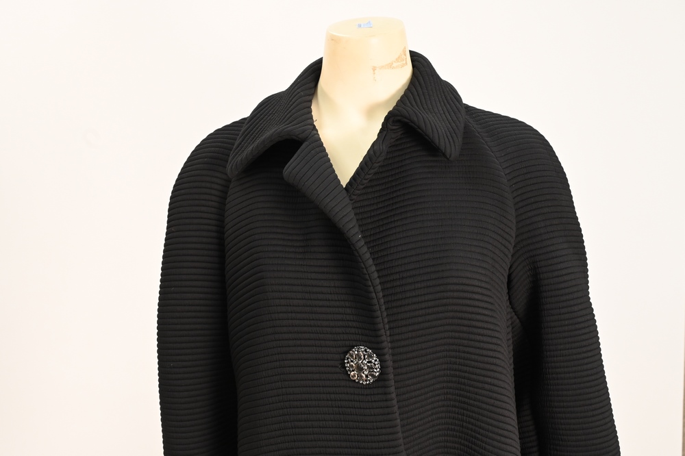 Lot 178: Giorgio Armani Black Quilted Swing Coat, having jeweled buttons, notched collar and slightly gathered sleeves, size large, excellent…
