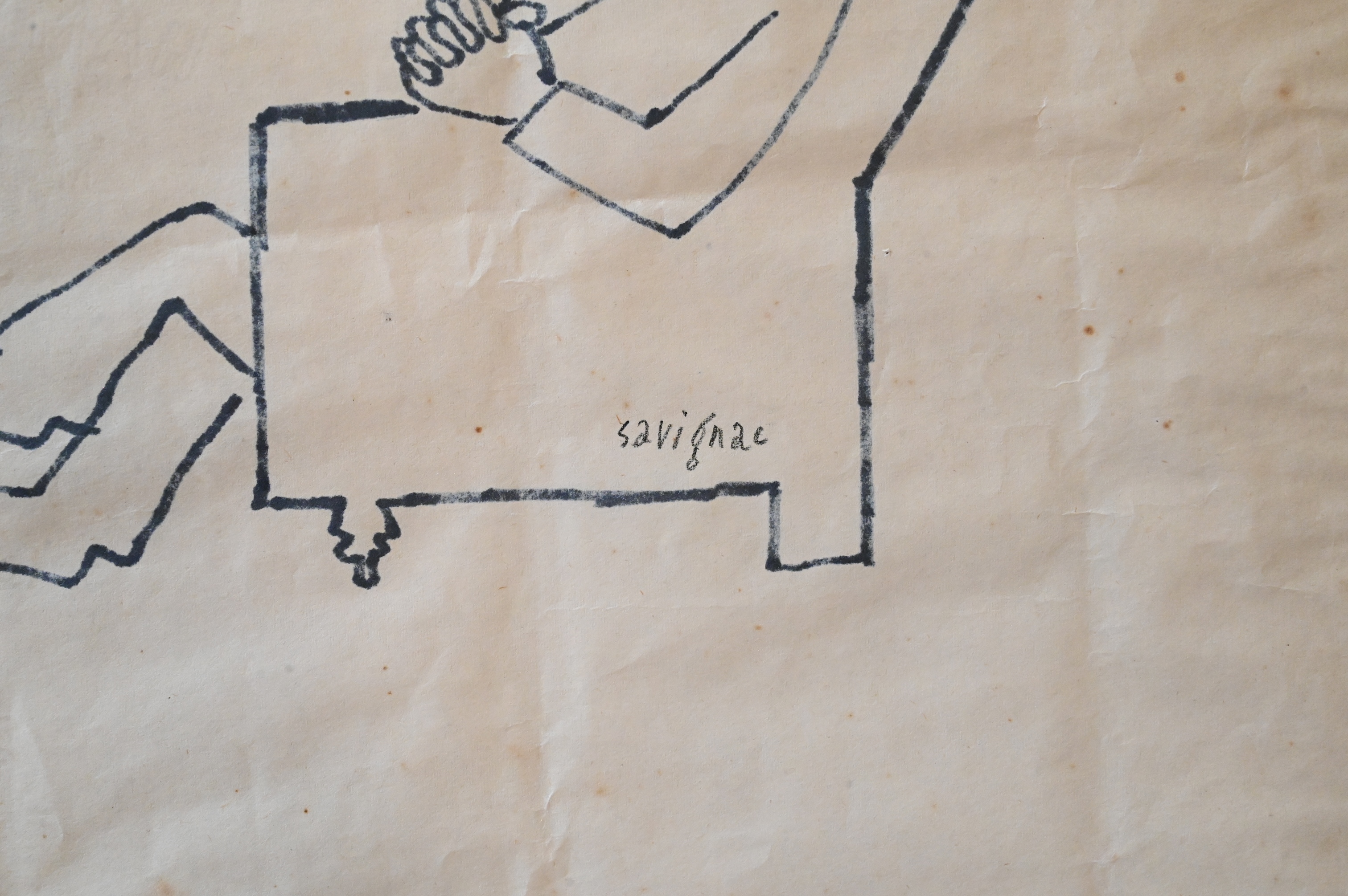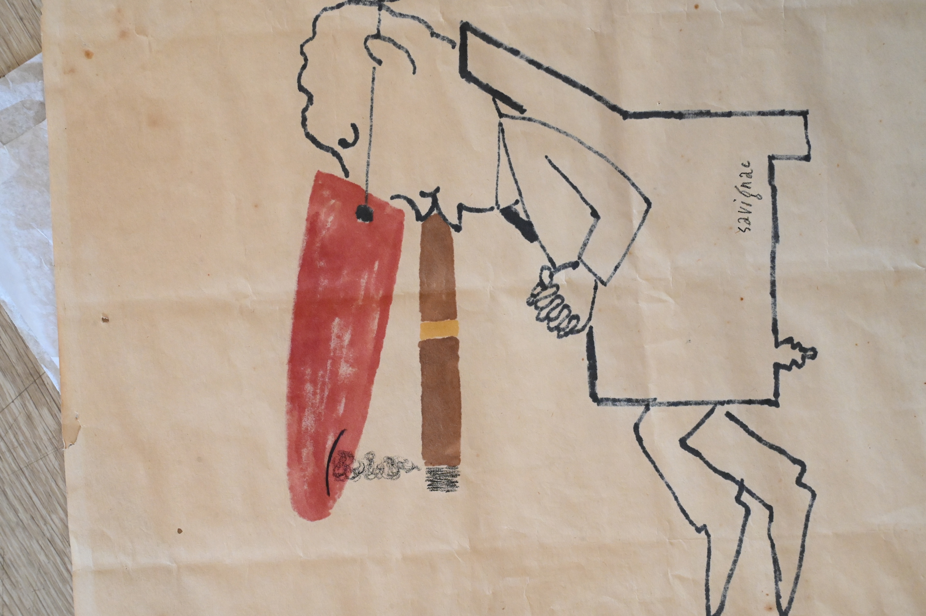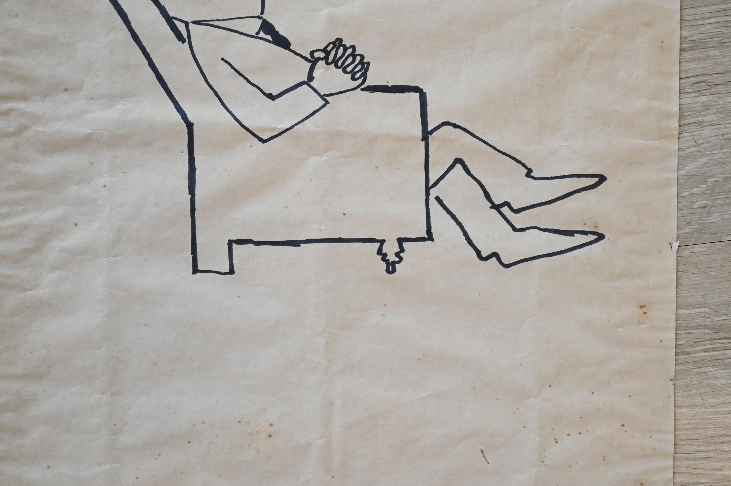 Cigar Chair, man reclining while smoking a cigar wearing a fake nose