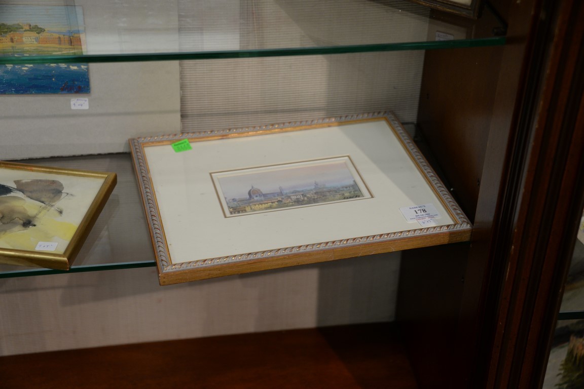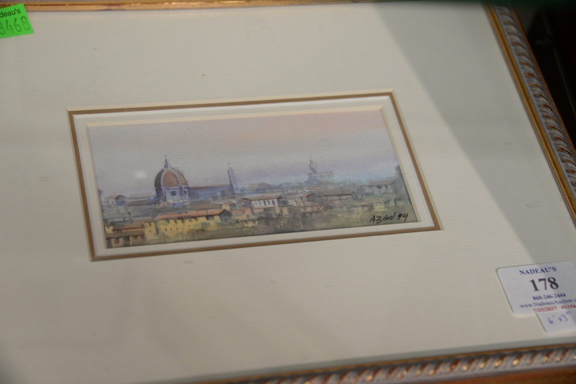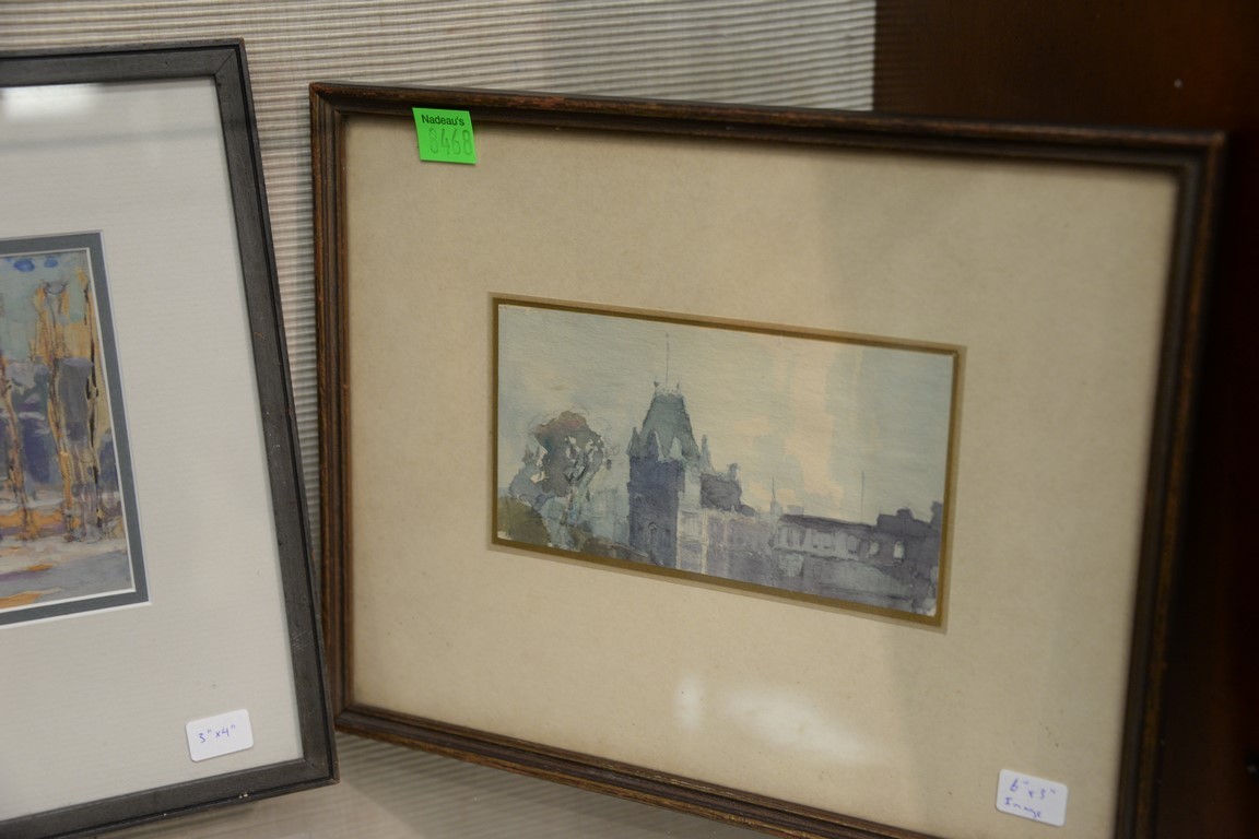 Six paintings including Harry Knox Smith 1879-1957, watercolor landscape Highlands of the Hudson, signed lower right Smith 092952, signed on verso as well small watercolor with trees watercolor cityscape small watercolor signed indistinctly cityscape signed Azad 94 and small oil on board, Island shore. sizes 6 x 3 to 9 x 4 Provenance: Estate of Arthur C. Pinto, MD