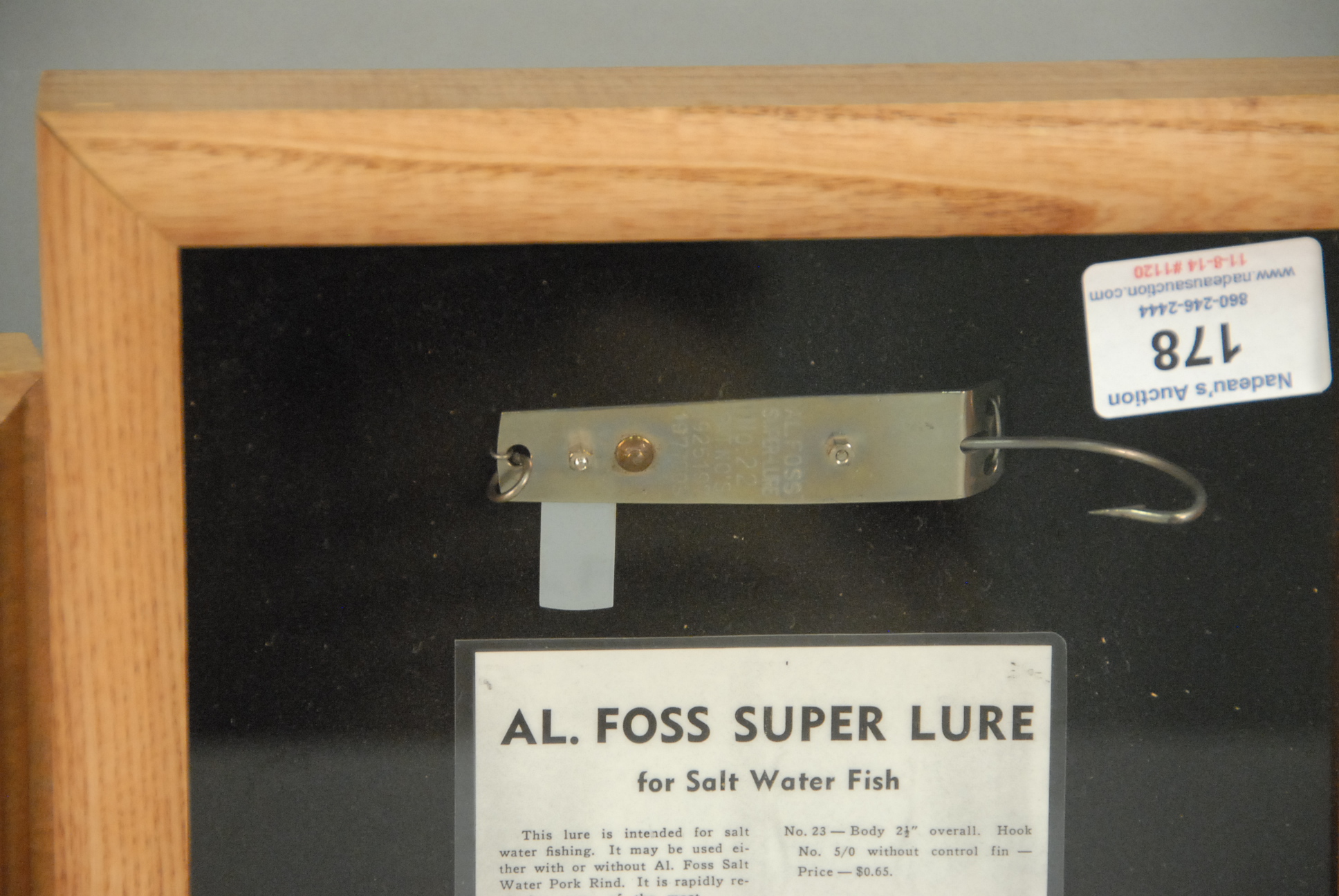 Lot 178: Two cases with Al Foss Pocket Kit with Oriental Wiggler, spare hook, and Shimmy #5, and a pork rind strip along with a salt water su…