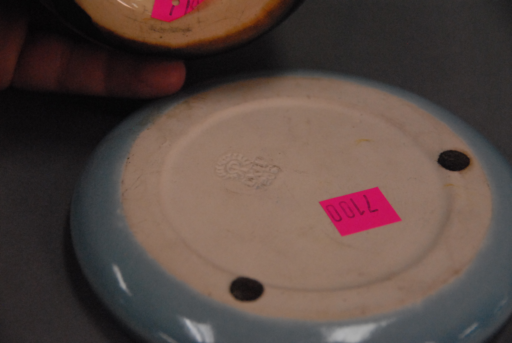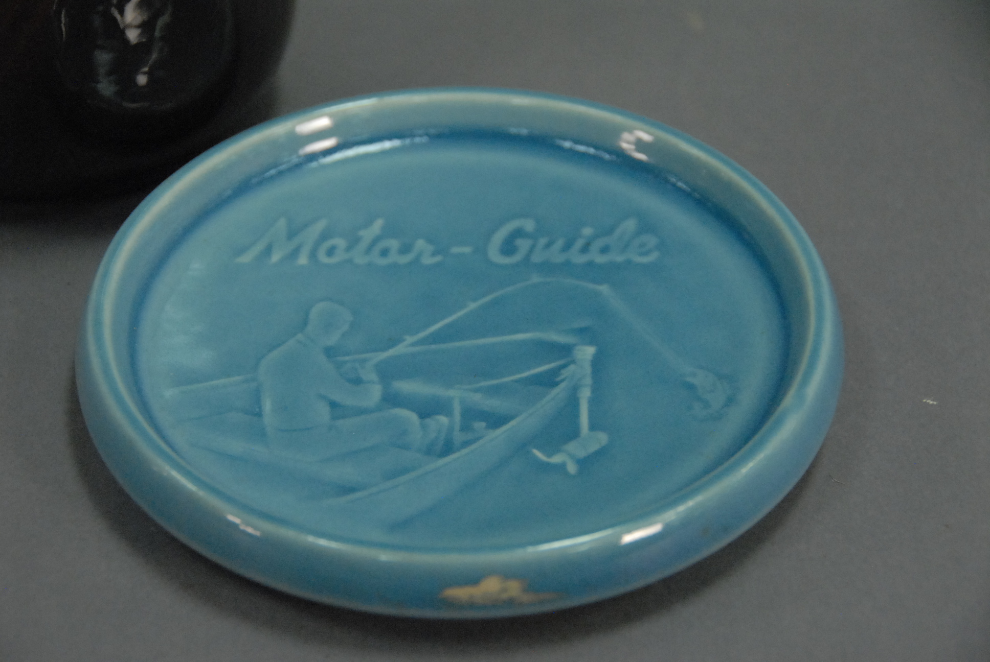 Two piece lot to include Weller Aurelian vase ht. 9 1/2in. and Rookwood advertising Motor-Guide dish dia. 5 1/2in.
