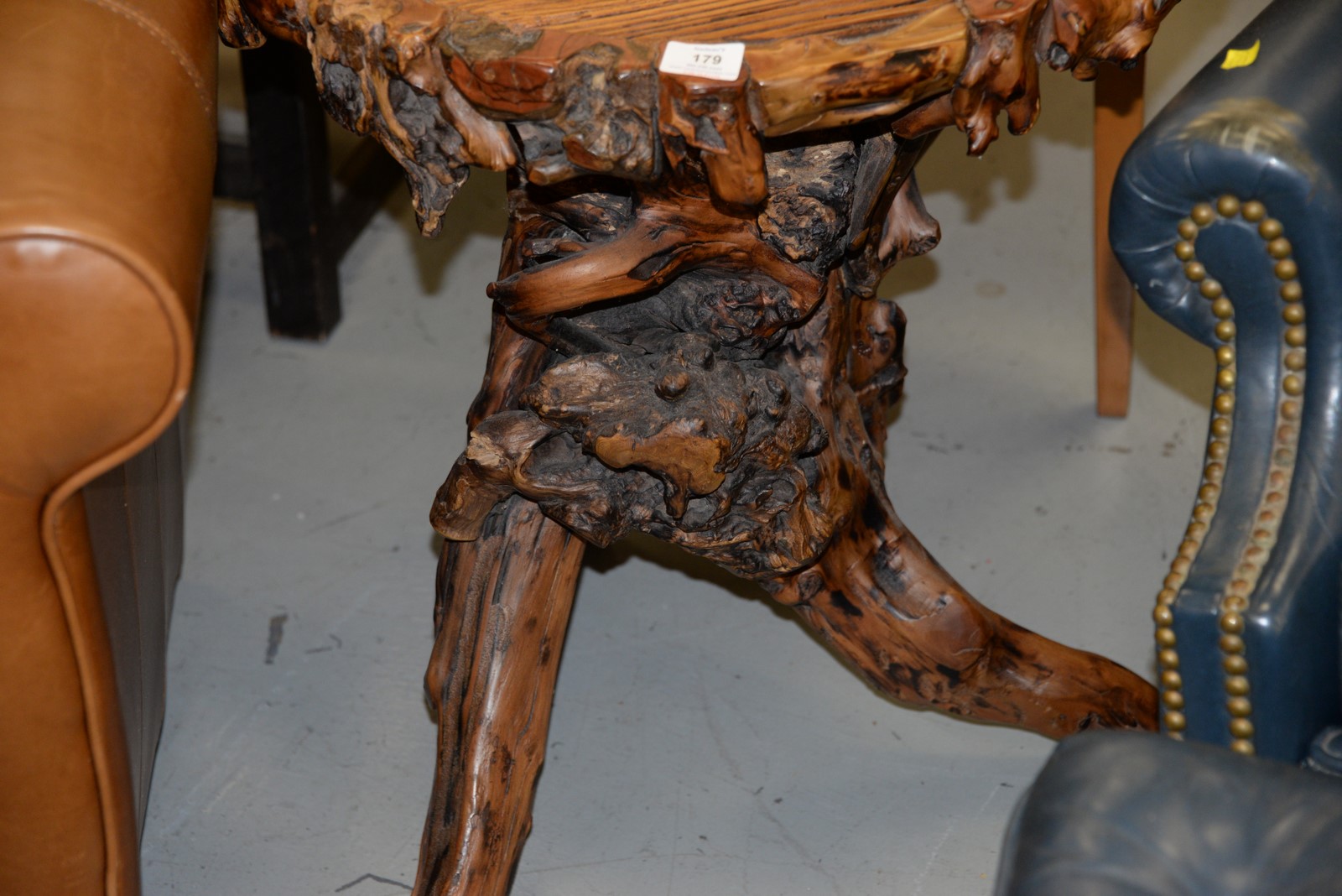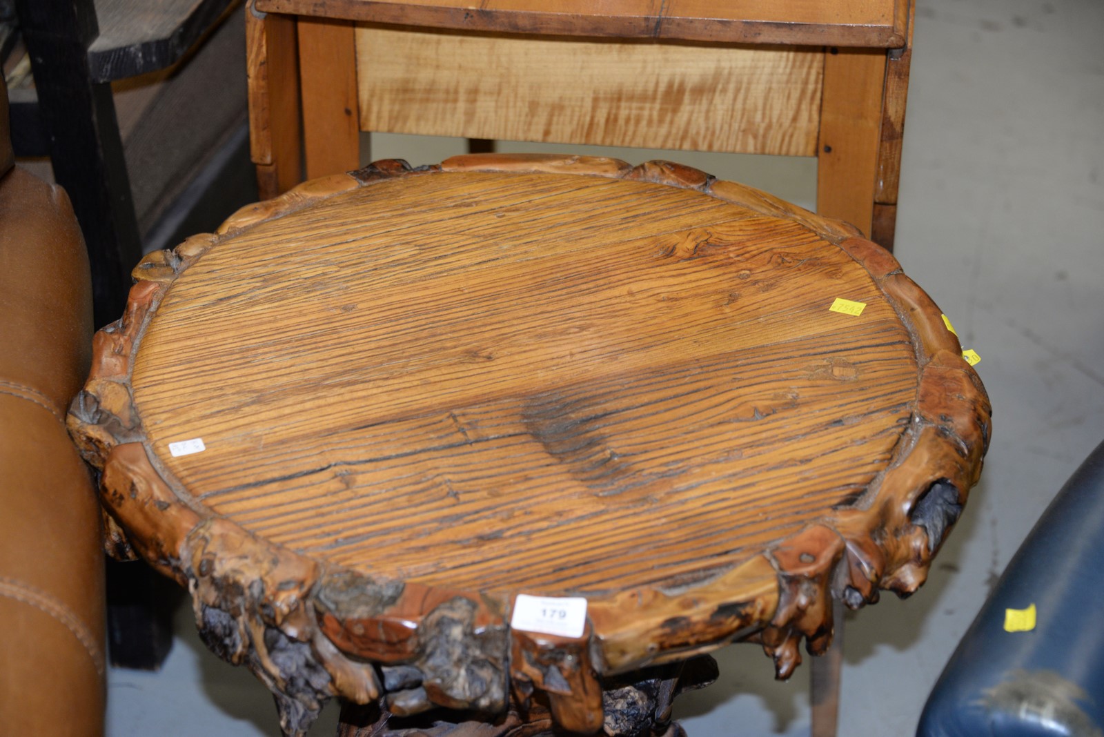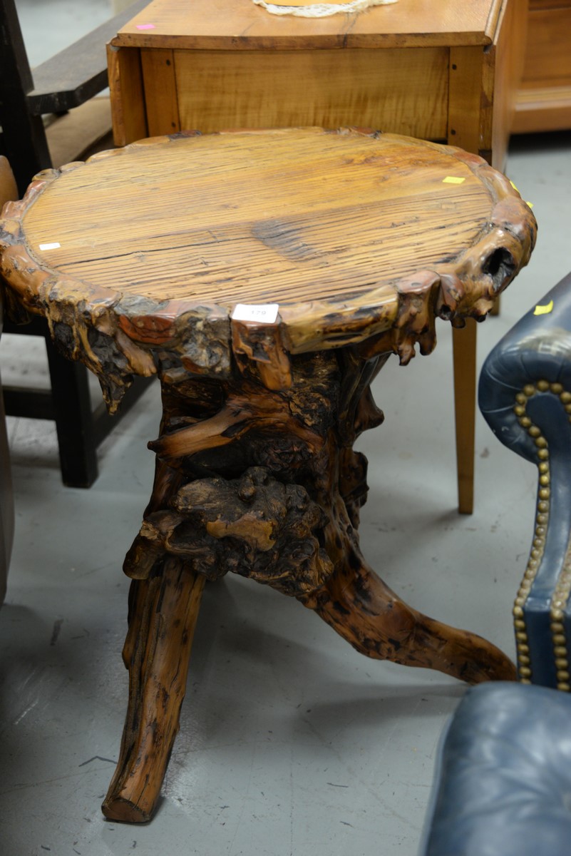 Adirondack style table. ht. 24 in. dia. 21 in.