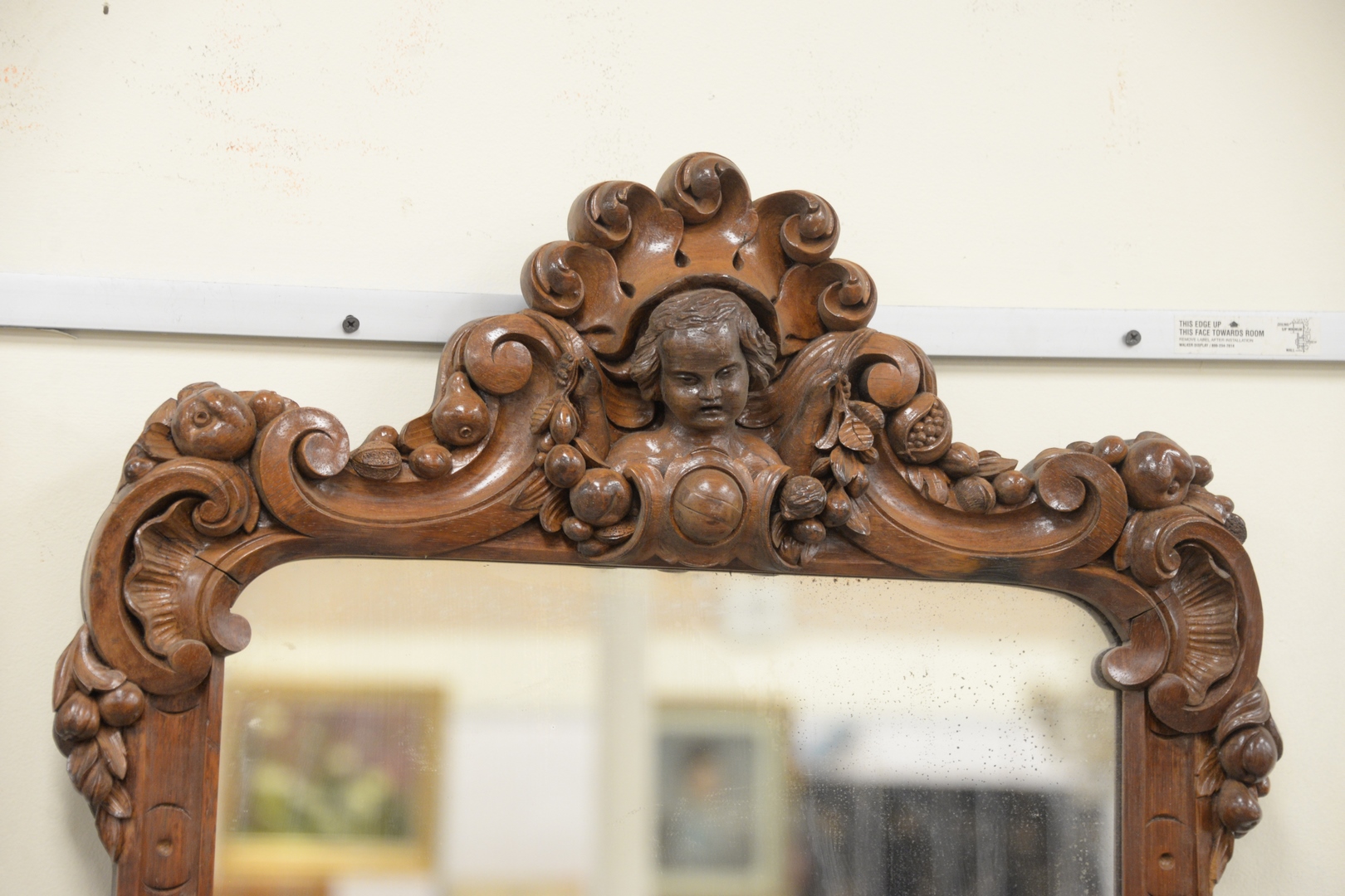 Lot 179: American Victorian Rosewood Rectangular Mirror, with carved puttis, height 45 inches, width 23 inches.
