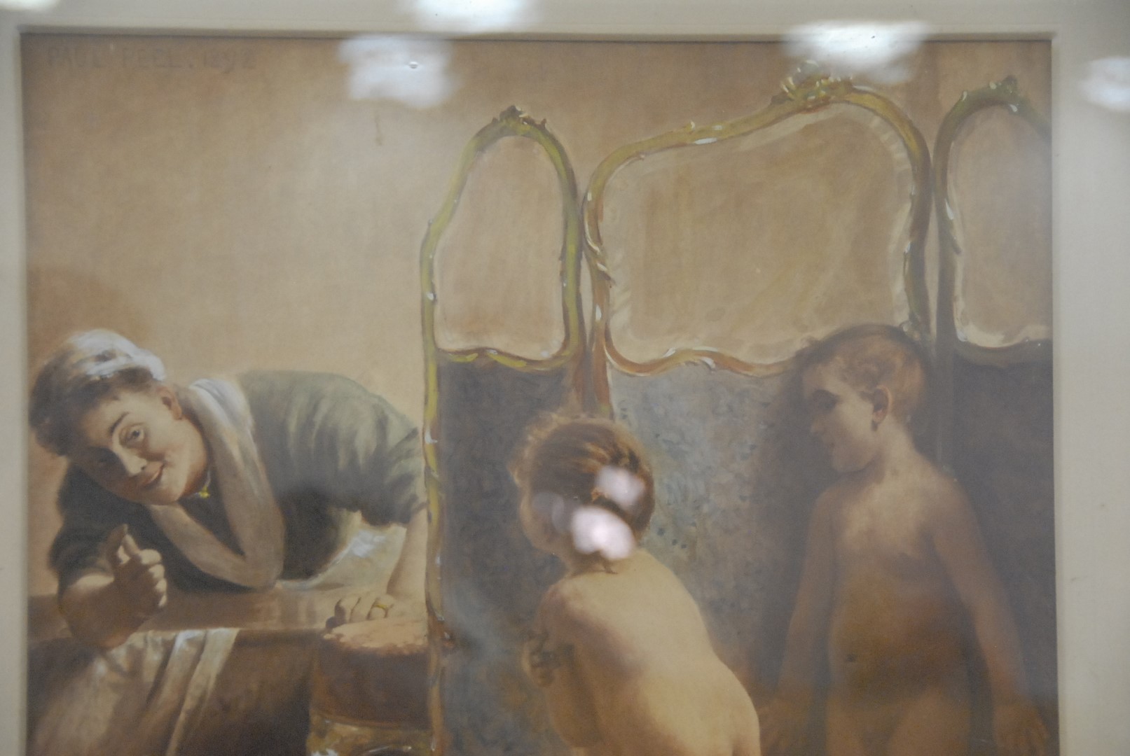 Circle of Paul Peel 1861-1892 engraving with highlights of mother with children signed top left Paul Peel 1892. 16 x 14