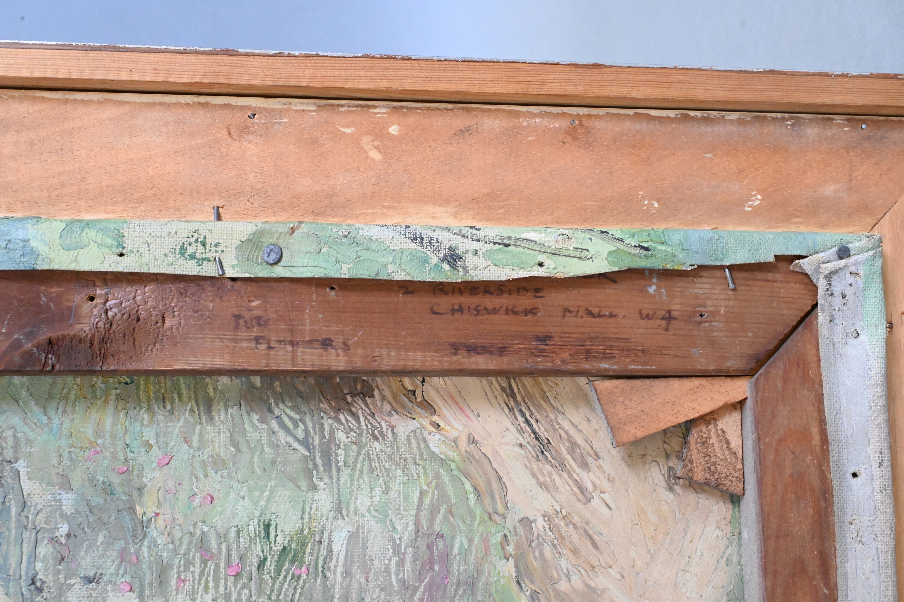Signed and inscribed on stretcher bars “Mrs. Mary Potter 2 Riverside Chiswick Mall W.4”