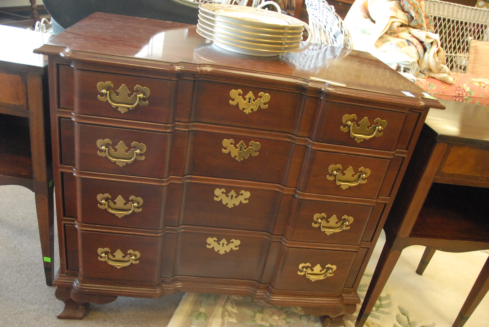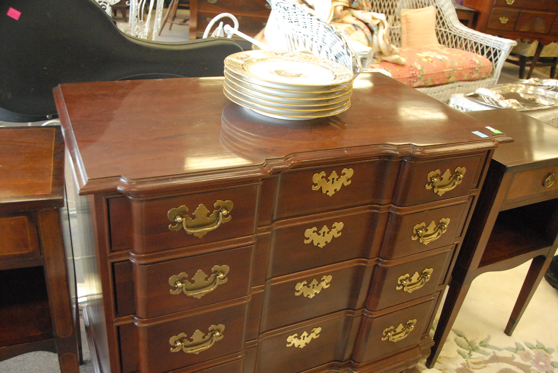 Ethan Allen dark cherry block front drawer chest, ht. 31in. wd. 36in.