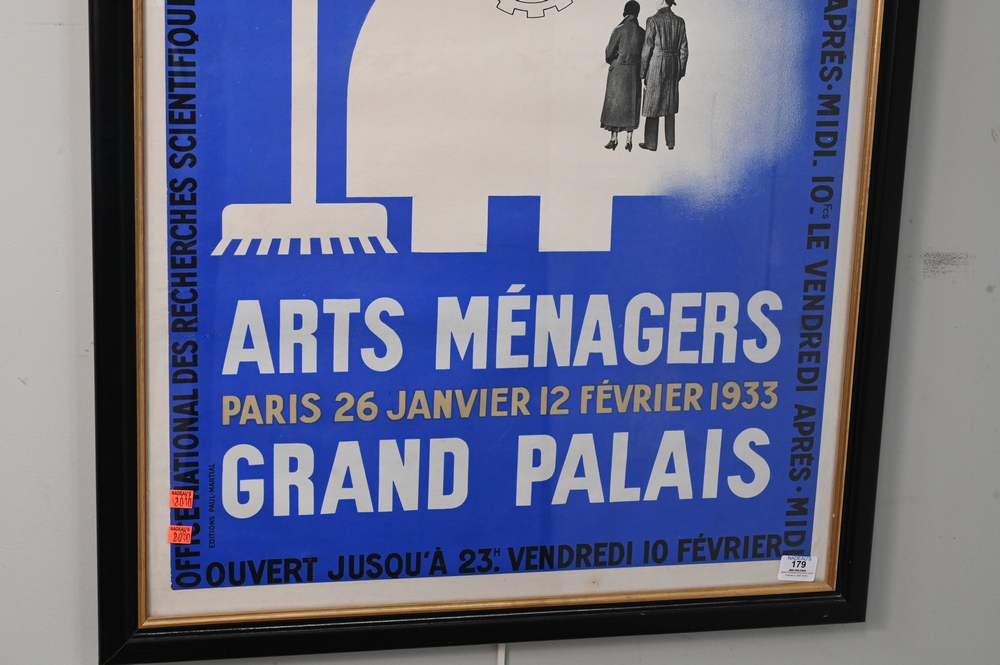 Lot 179: Frances Bernard (1900-1979), Arts Menagers/Grand Palais 1933, lithograph poster, 36″ x 24″.
