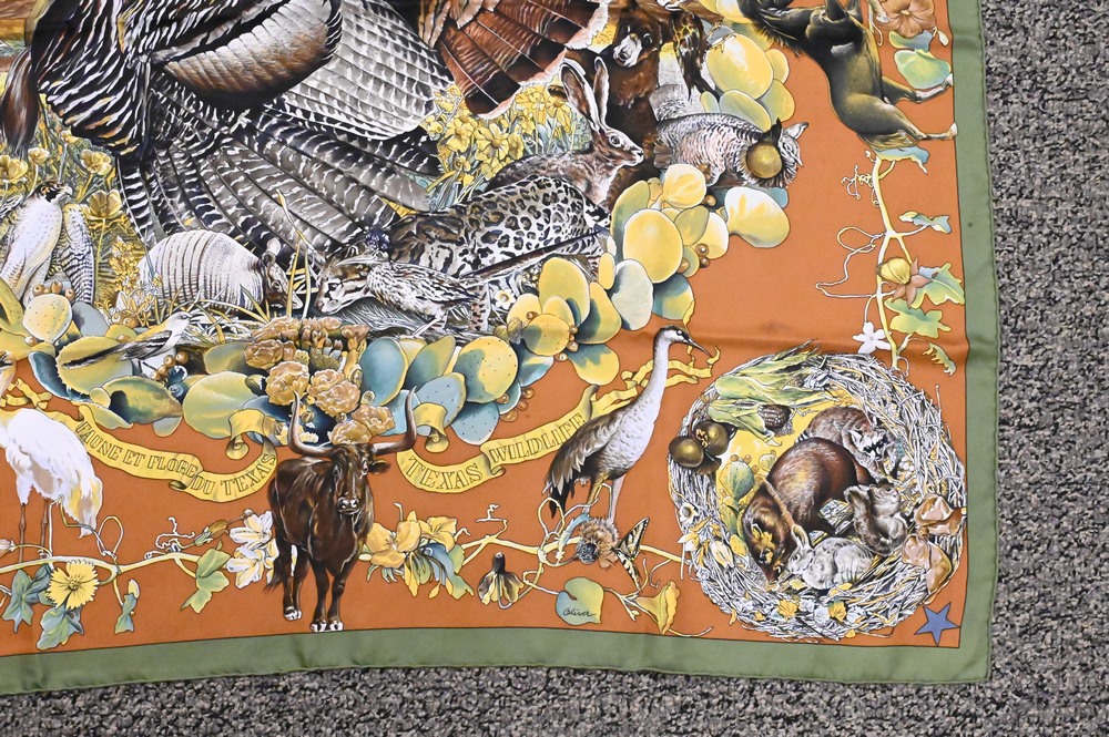 Hermes Paris “Faune Et Flore Du Texas” Silk Scarf, 34″ x 34″.