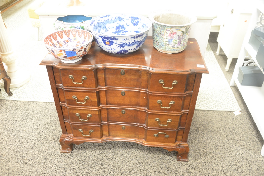 Lot 179: Jasper Cabinet Company Chippendale Style Mahogany Blockfront Chest, having four drawers on ogee feet, with a brass tag in the first …